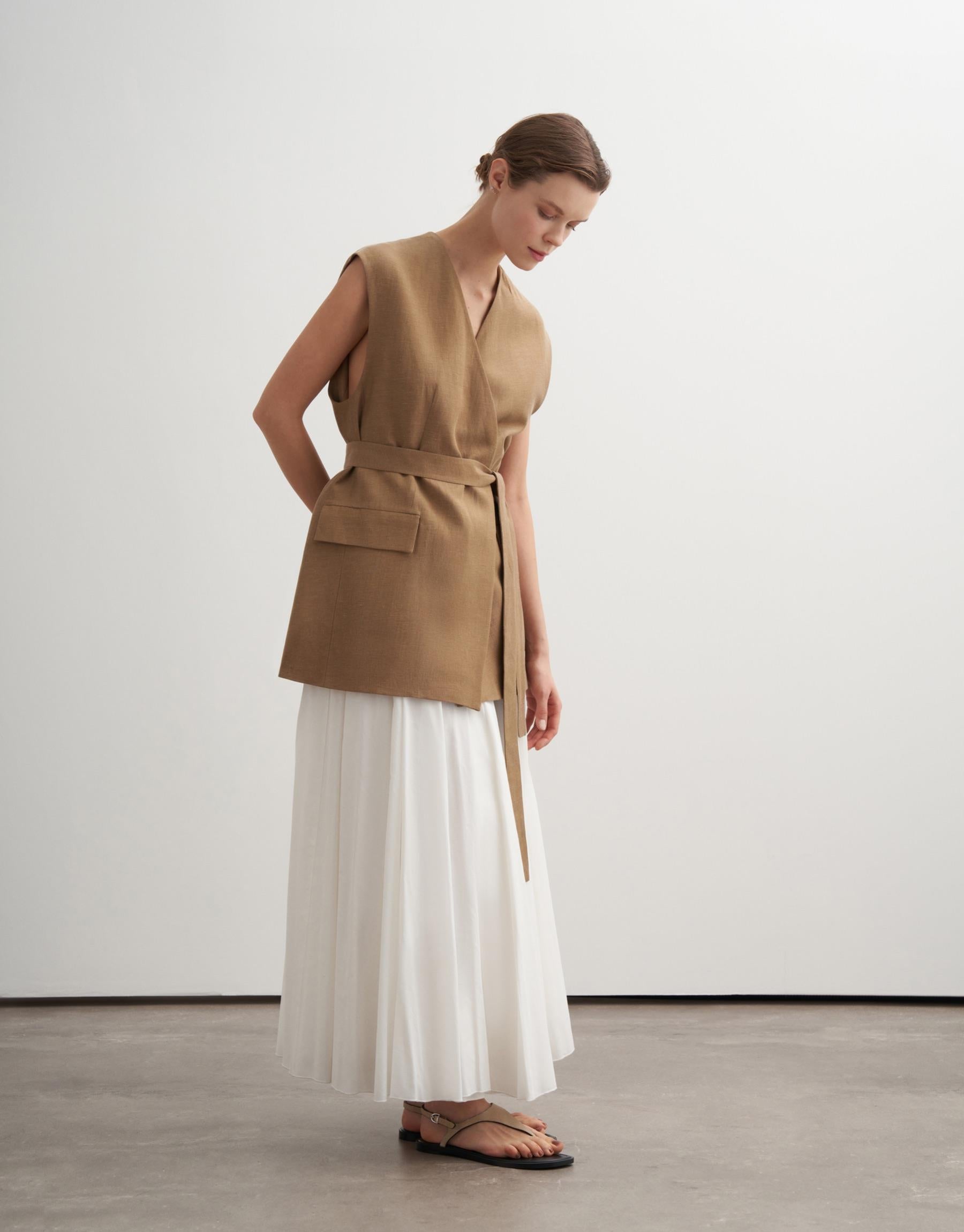 Vegan Linen Wrap Vest – Camel