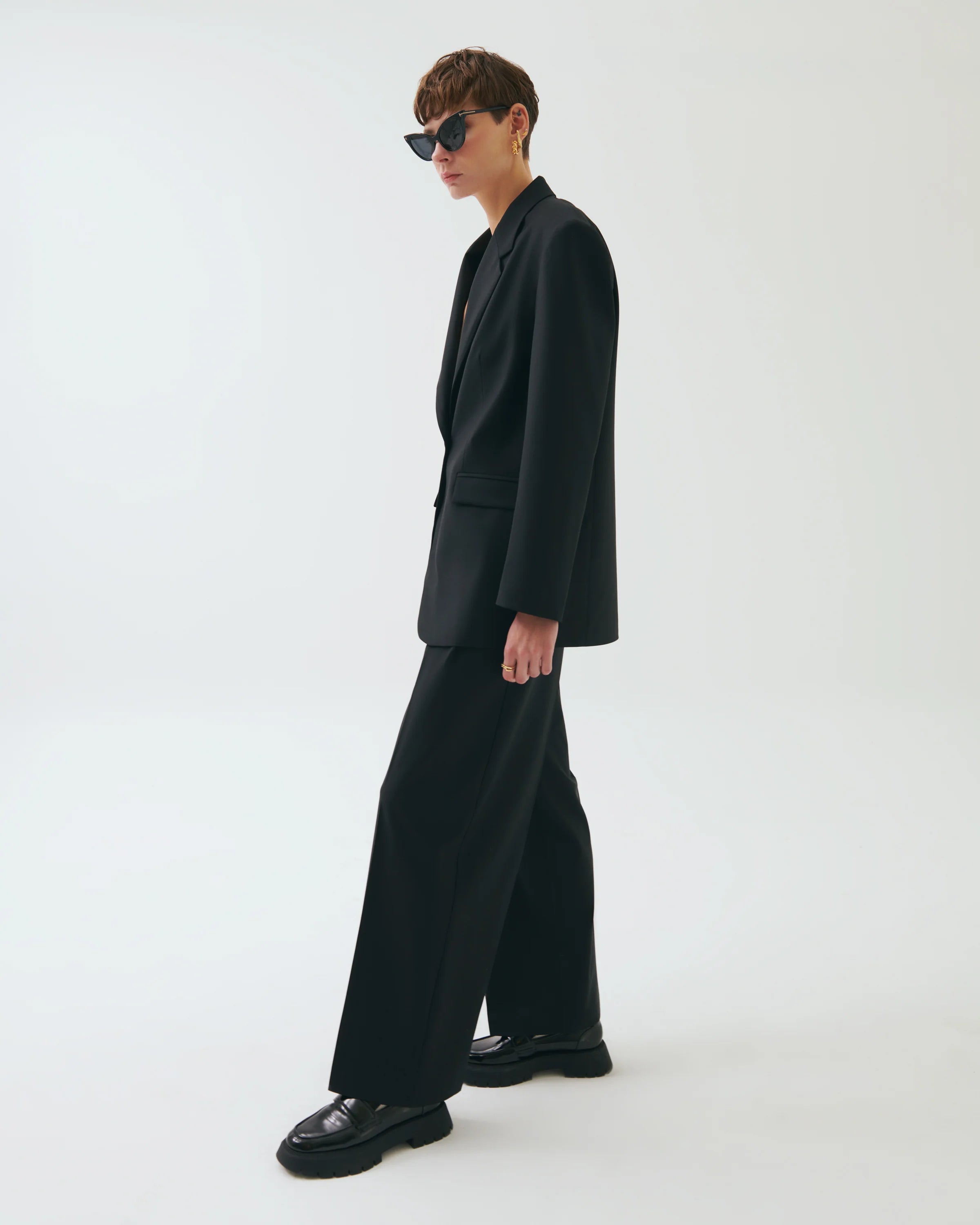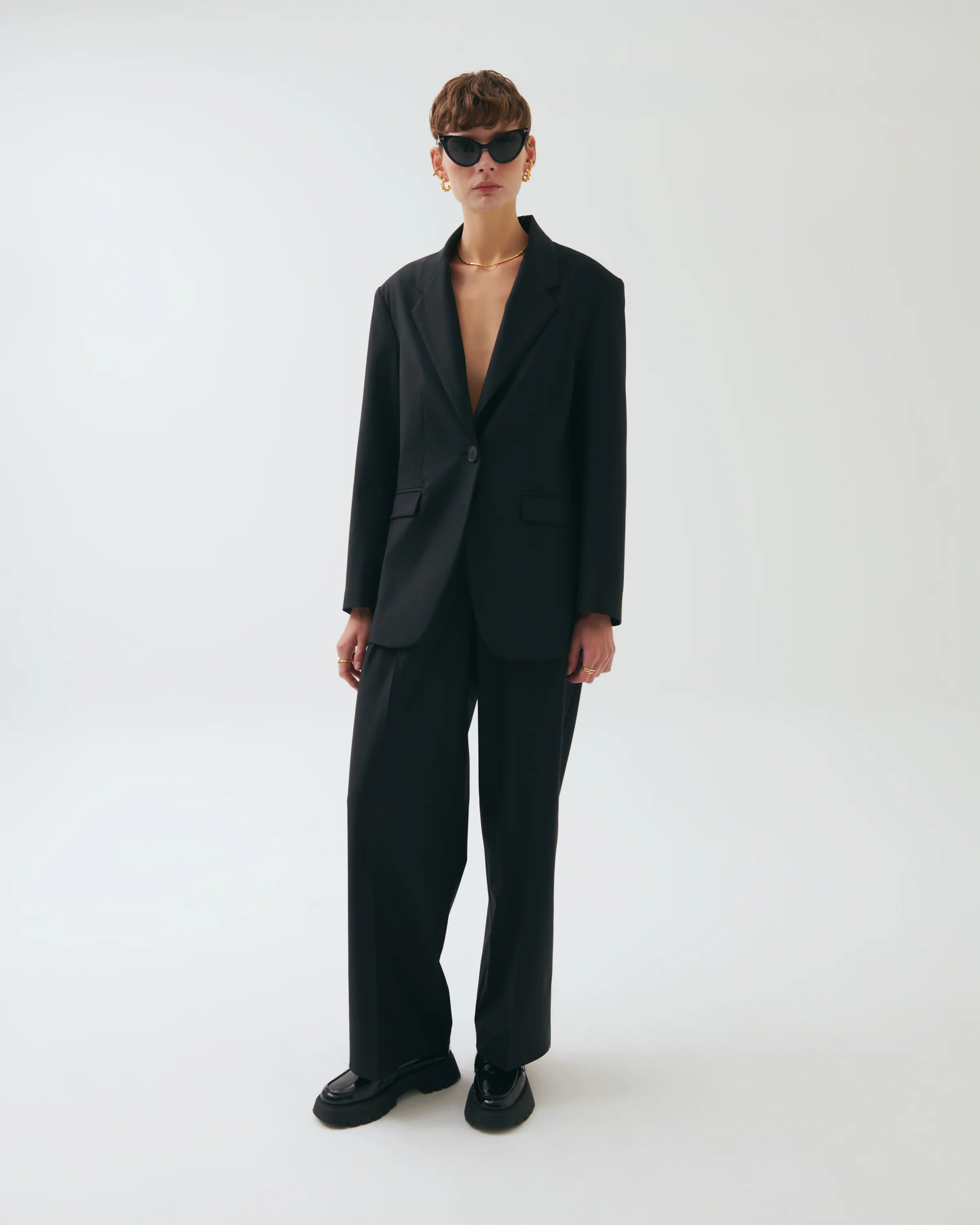 Tailored with a relaxed, elevated structure — the Maxim Oversized Blazer brings effortless sophistication to everyday and evening looks. Designed with dropped shoulders and a clean single-button front, it delivers a fluid, modern silhouette without losing its sharp tailoring. Fully lined for smooth layering, the soft textured wool blend adds comfort while maintaining its refined drape. A versatile essential that transitions seamlessly from casual styling to evening elegance.
