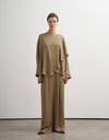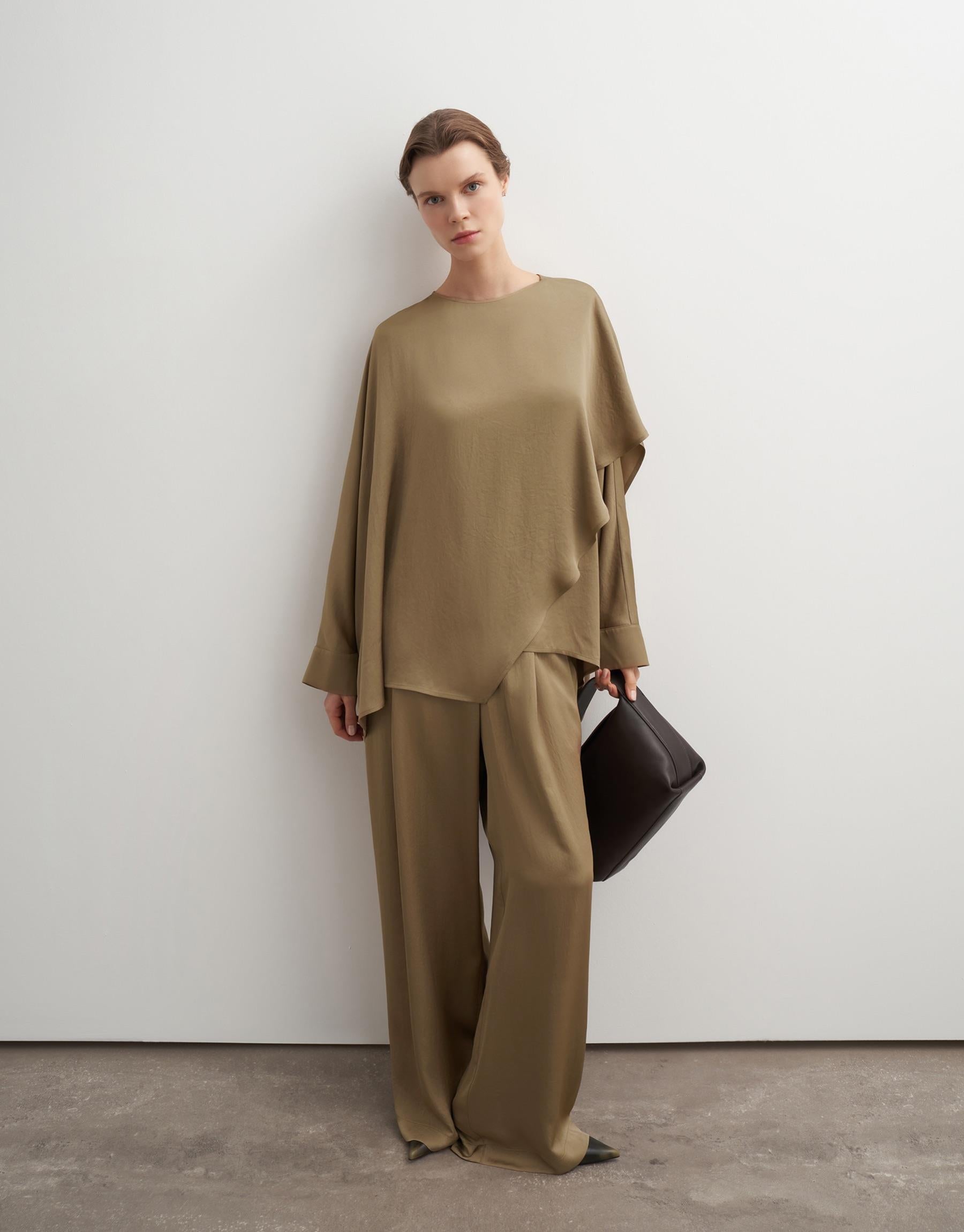 Draped Shawl Collar Blouse – Dark Beige
