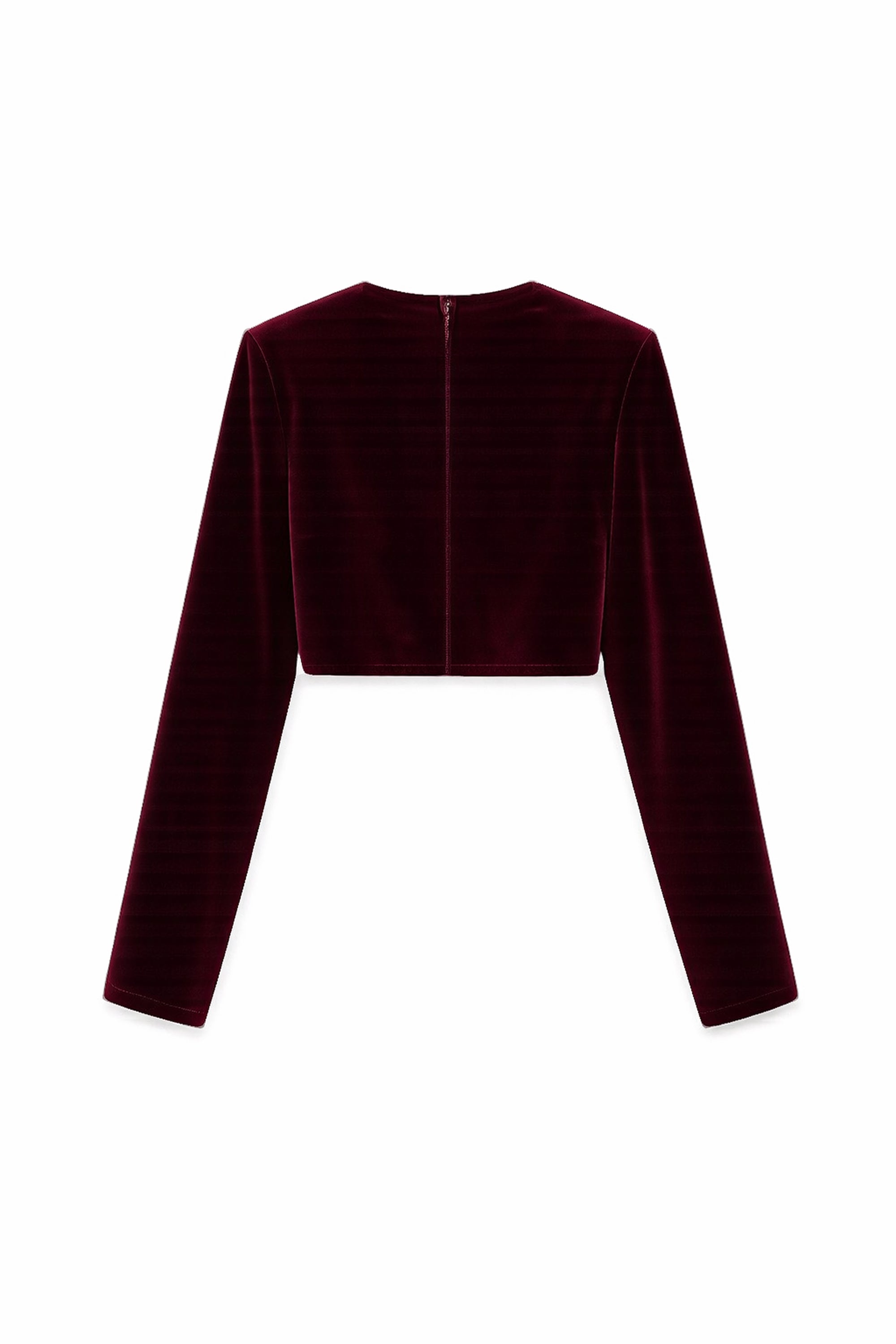 Padded Shoulder Velvet Mini Blouse – Burgundy