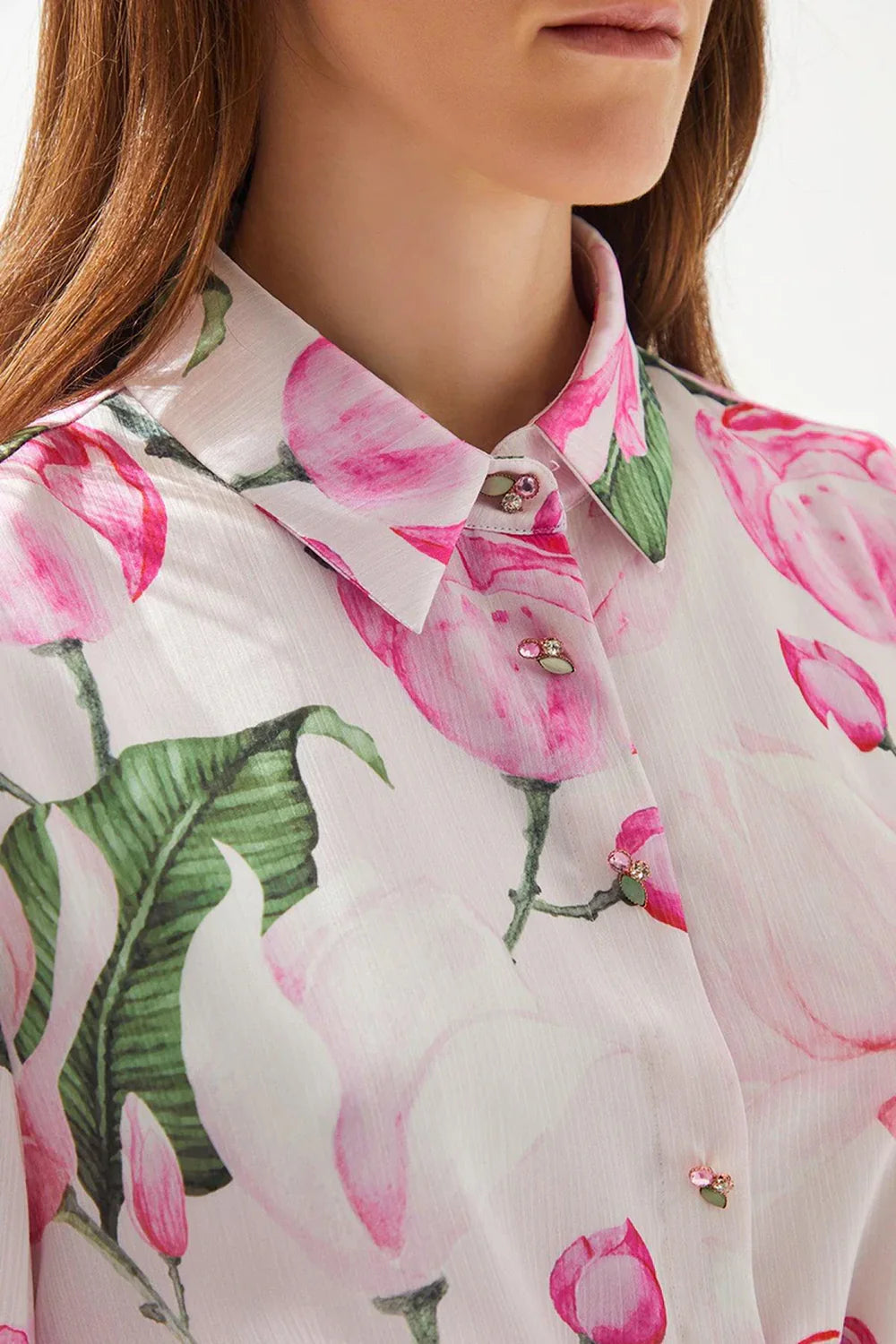 A refined long dress that merges timeless tailoring with modern femininity. Designed with a classic shirt collar and long sleeves, this silhouette is elevated by a softly pleated skirt and a delicately gathered waist that creates elegant movement with every step. Custom-designed buttons accent the front placket and cuffs, adding a couture touch, while the removable matching belt allows for versatile styling — worn loose or cinched for definition. A polished yet effortless piece suited for refined daytime wear and elegant evening occasions.