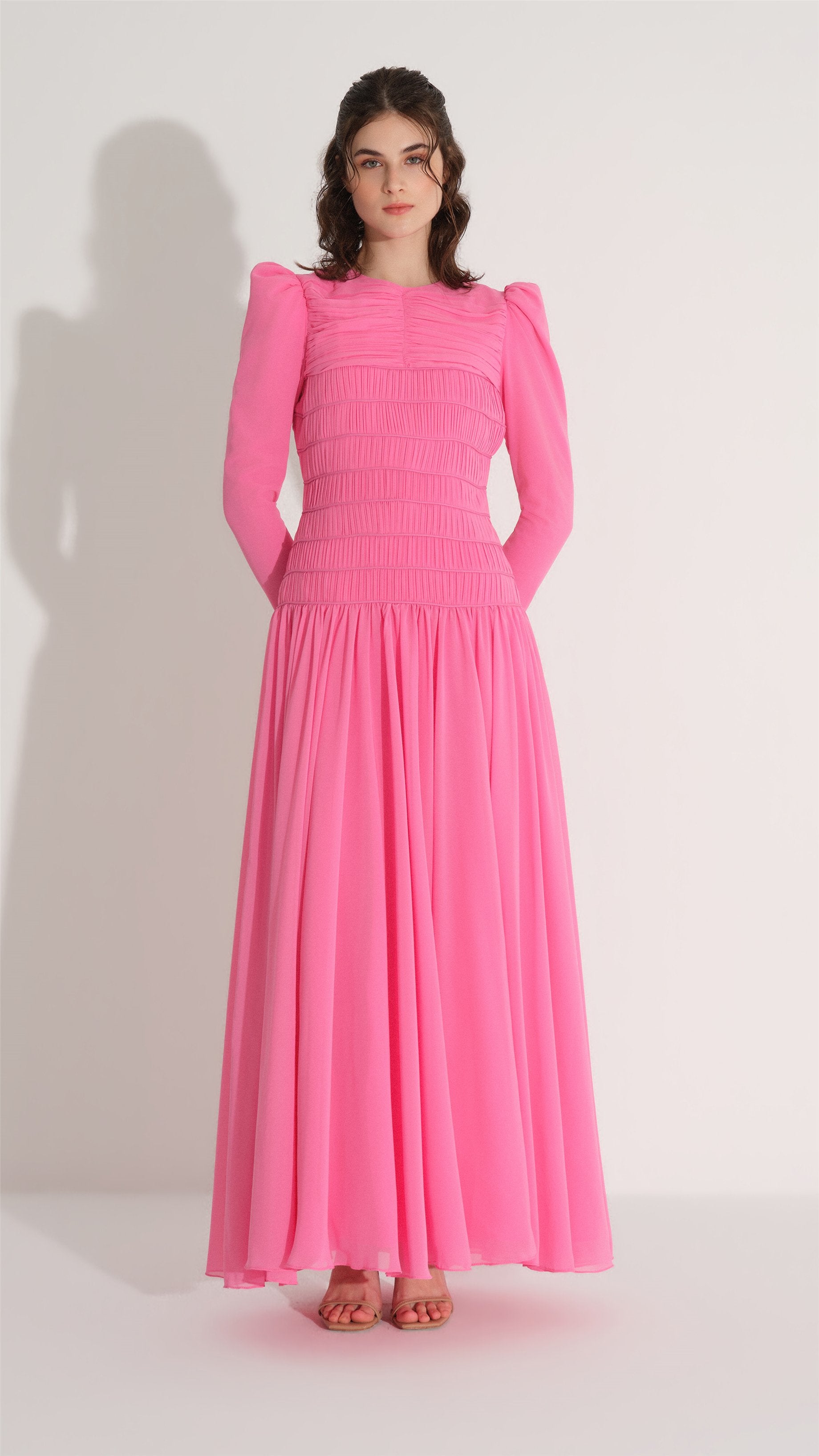 Pleated & Piping Detail Dress – Pink
