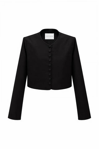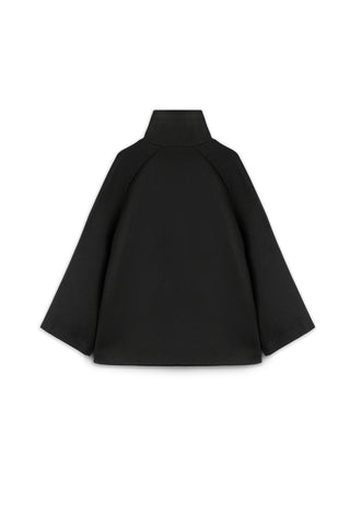 High-Neck Zip-Up Short Coat – Black