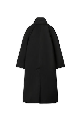 High-Neck Oversized Long Coat – Black