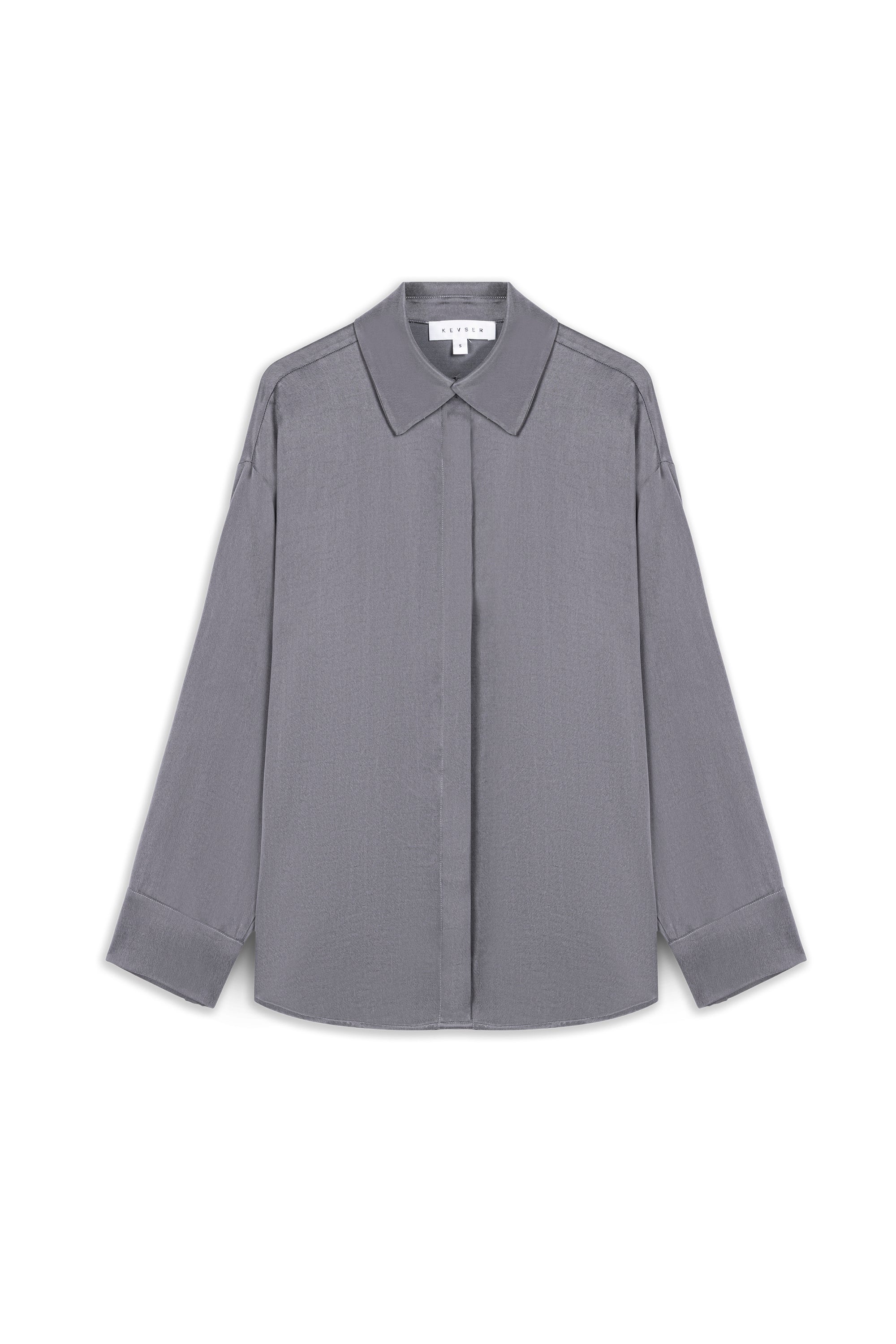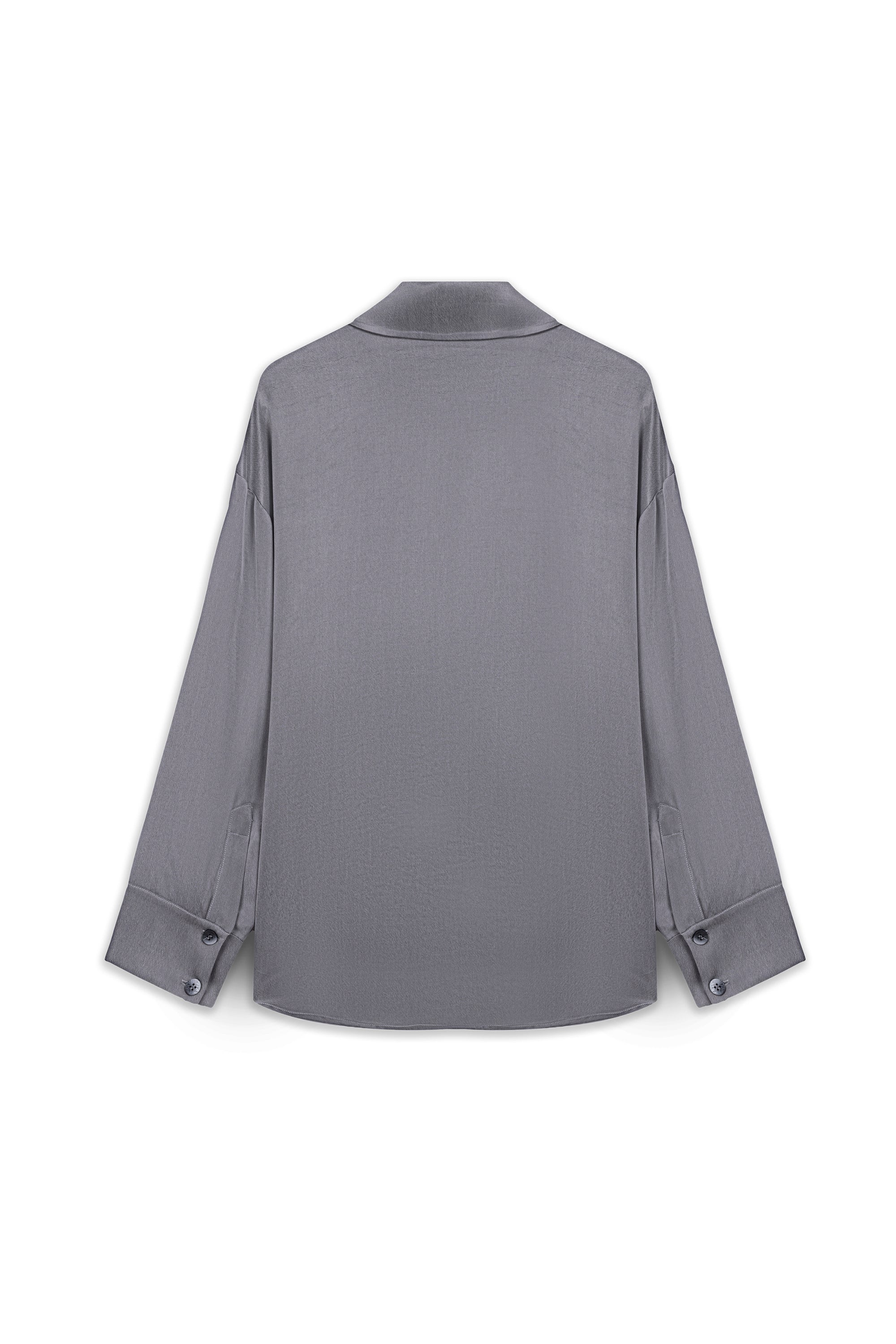 This oversized shirt is crafted from fluid cupro fabric, offering a relaxed silhouette with a refined, contemporary feel. Designed with a concealed front placket, dropped shoulders, and long sleeves finished with wide cuffs, it balances clean lines with subtle tailoring. The smooth, non-clinging fabric remains fully opaque, ensuring effortless comfort throughout the day.