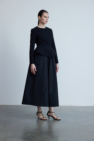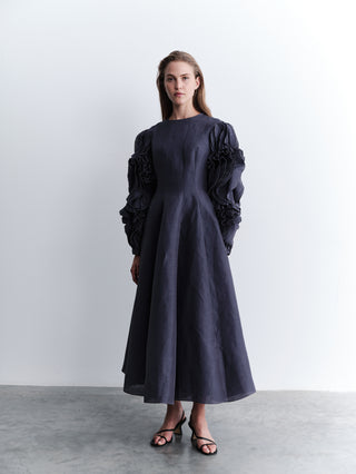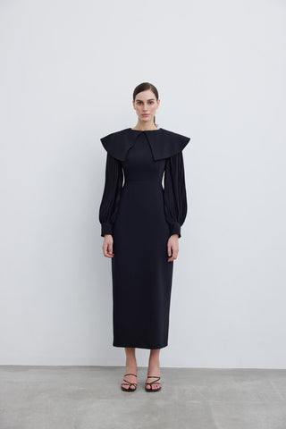 Elegant Pleated Sleeve Crepe Evening Dress – Black