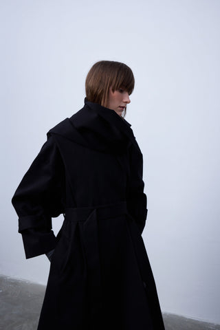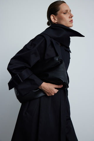 Double-Breasted Belted Cotton Trench Coat in Black