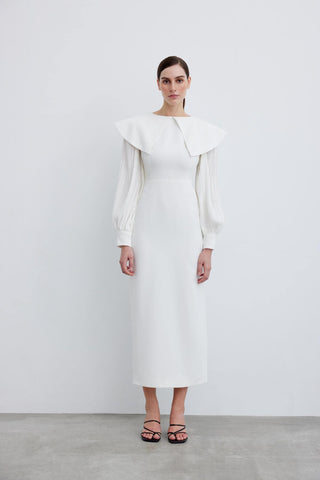 Elegant Pleated Sleeve Crepe Evening Dress – White
