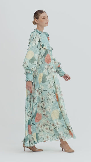 Floral Ruffle Maxi Dress – Mint