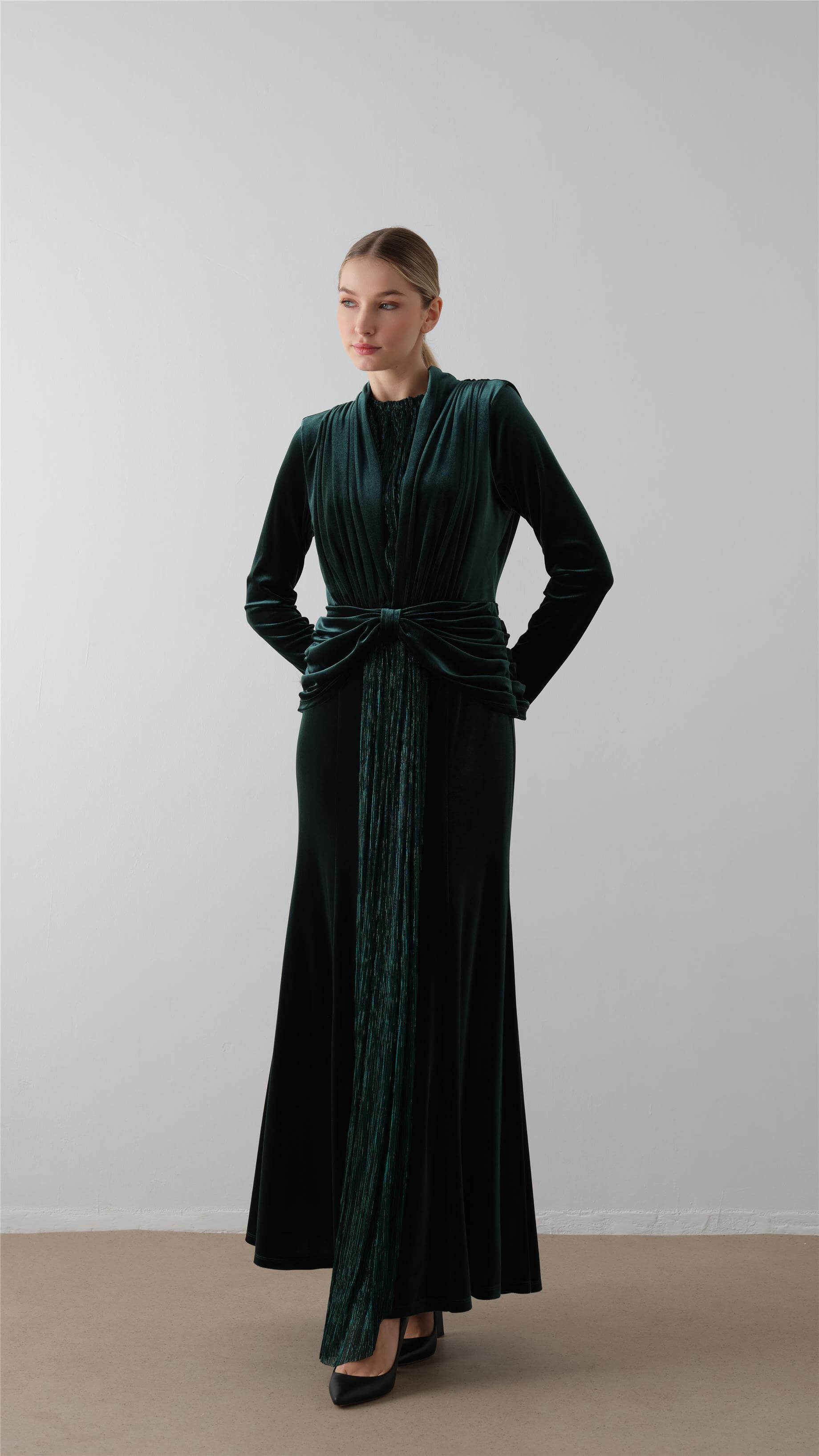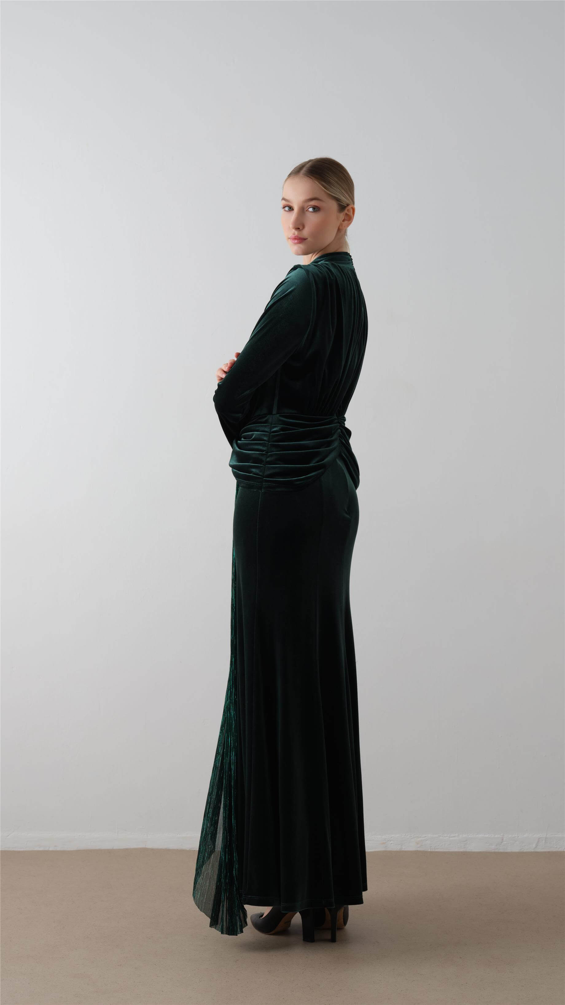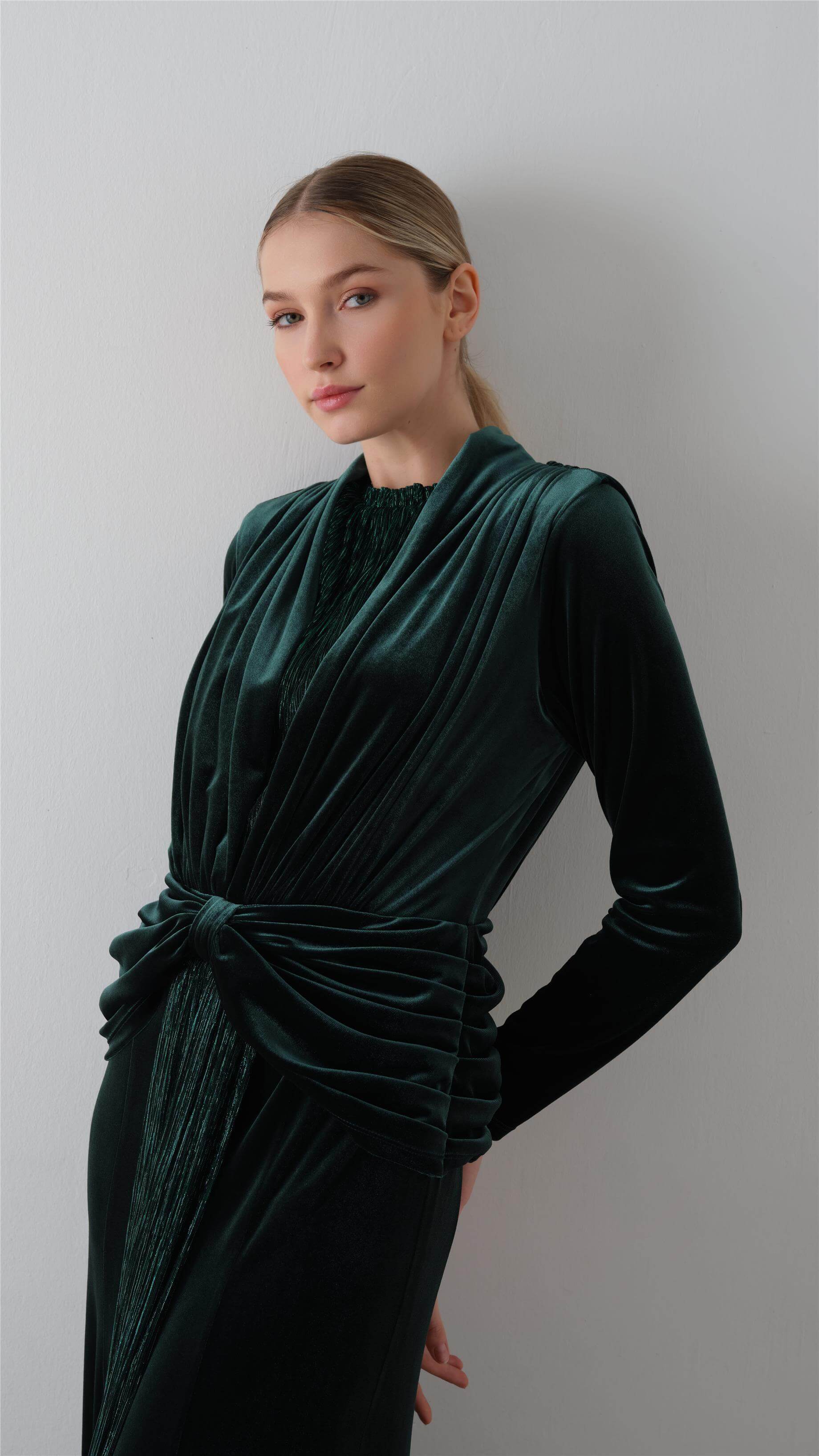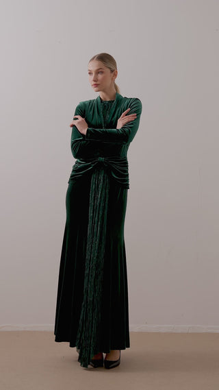 Front-Draped Velvet Dress – Emerald Green