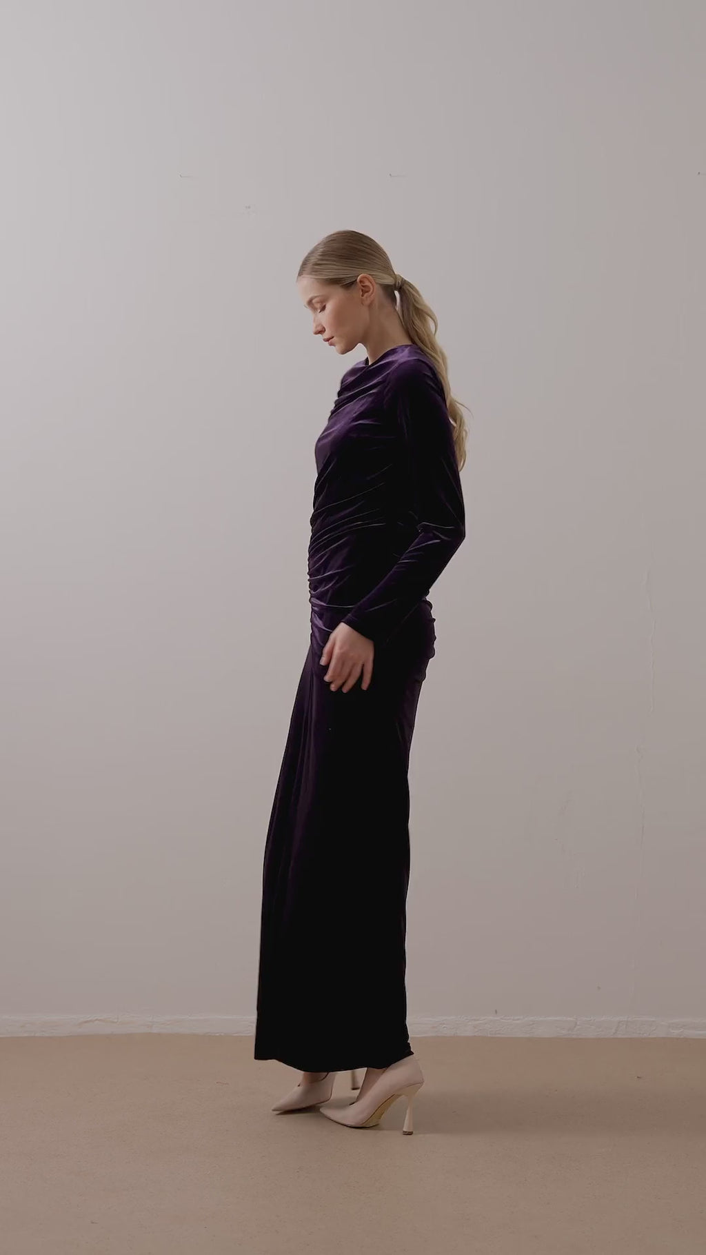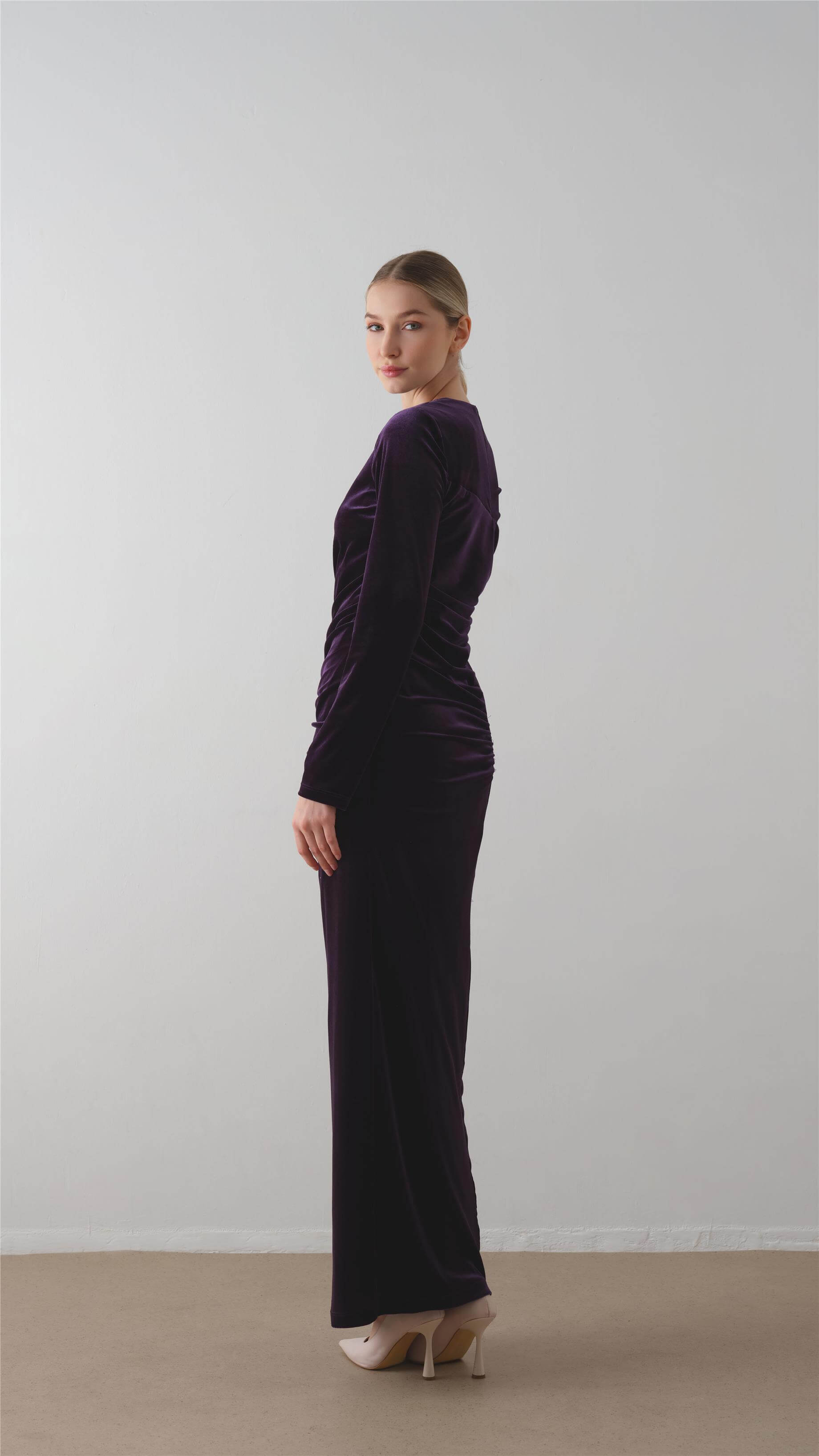 Ruched Velvet Maxi Dress – Plum