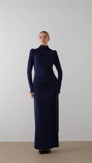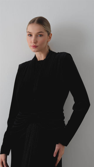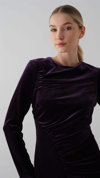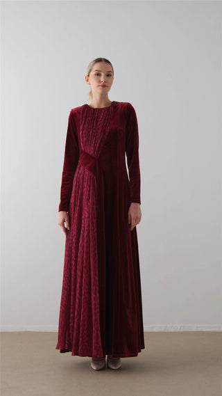 Cross-Draped Velvet Chiffon Dress – Bordeaux