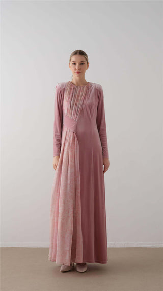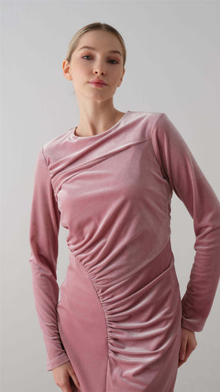 Cross-Draped Velvet Chiffon Dress – Powder Pink