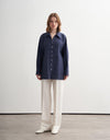 This oversized shirt is crafted from premium European linen, offering a breathable structure with a naturally textured finish. Designed with a relaxed silhouette and subtle stripe pattern, it features a front loop-button closure that adds a refined artisanal touch. The fluid cut enhances comfort while maintaining a clean, elevated look.