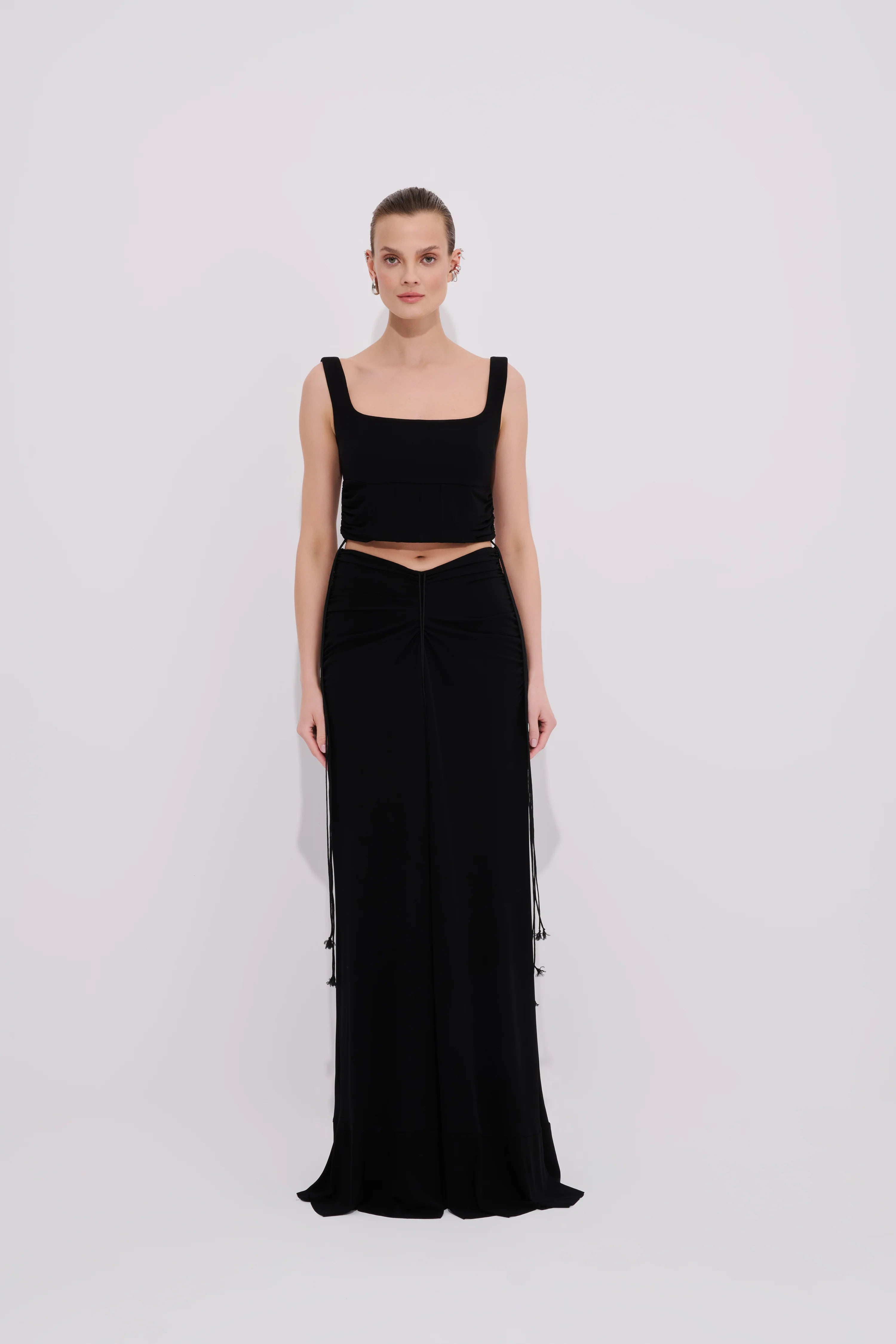 Joli Draped Maxi Skirt – Black
