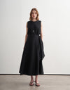 Fit: Wrap (anvelop) silhouette with adjustable side tie; structured yet fluid fit