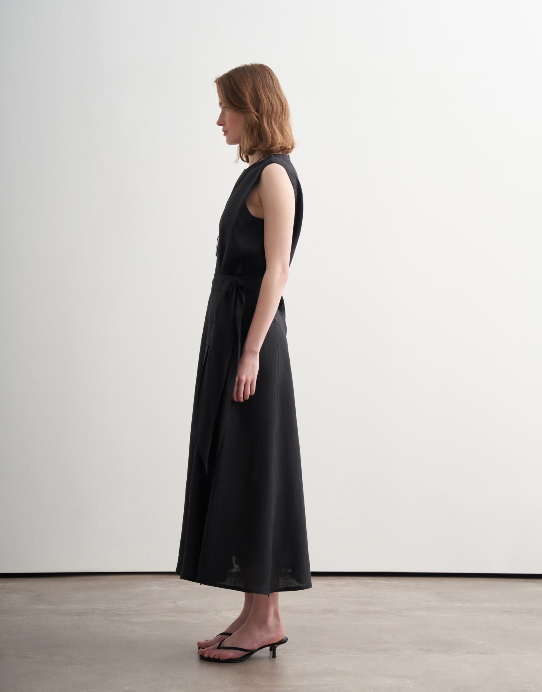 A refined expression of natural elegance, this wrap skirt is crafted from premium linen with a structured yet fluid drape. The wrap silhouette with side tie fastening creates a clean, adjustable fit, while the fabric’s breathable and softly textured character enhances everyday comfort. Designed for longevity and understated sophistication, it transitions seamlessly across seasons.