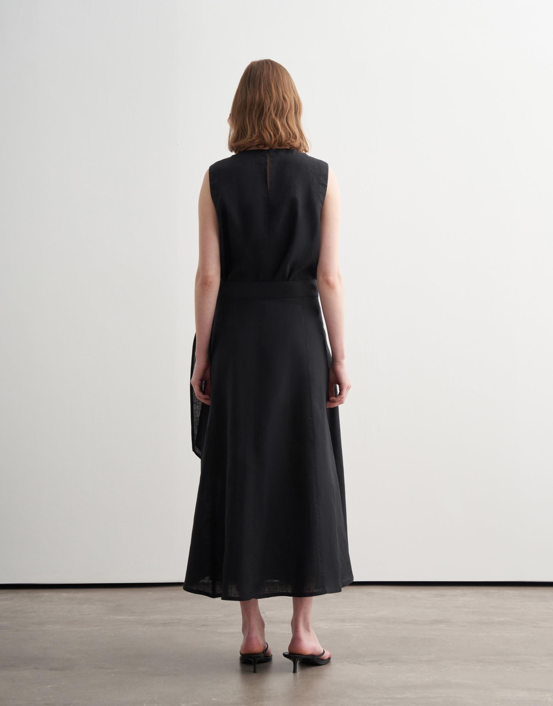 Wrap Linen Midi Skirt – Black