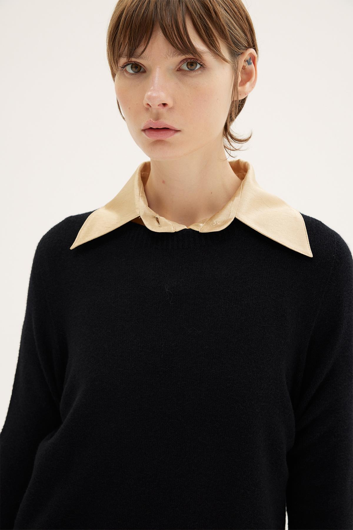 Fit: Relaxed, straight silhouette; classic crew neckline; long sleeves; lightweight knit structure suitable for autumn–winter layering