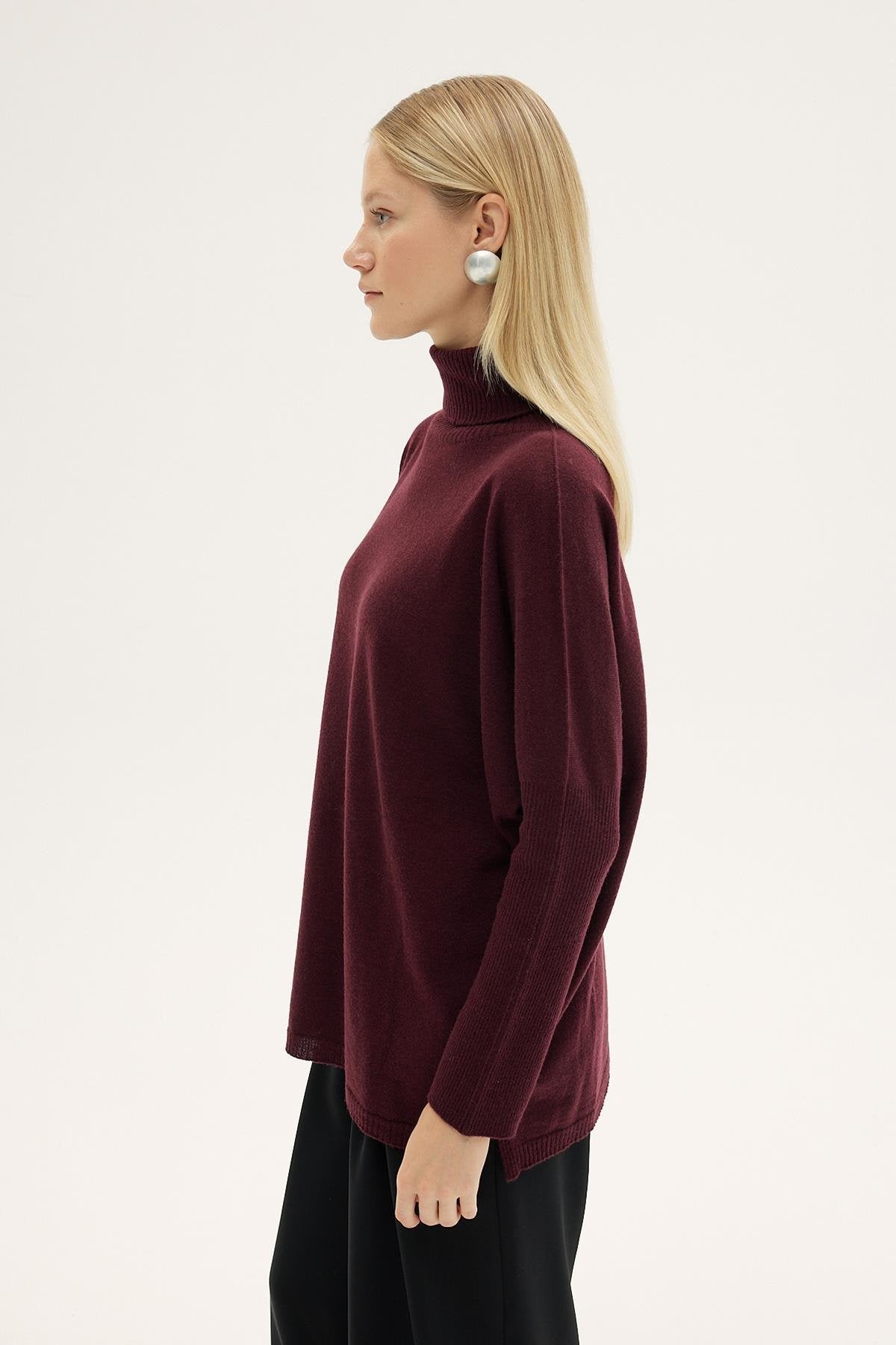Fit: Relaxed, straight silhouette; classic turtleneck collar; long sleeves; lightweight knit suitable for autumn–winter layering