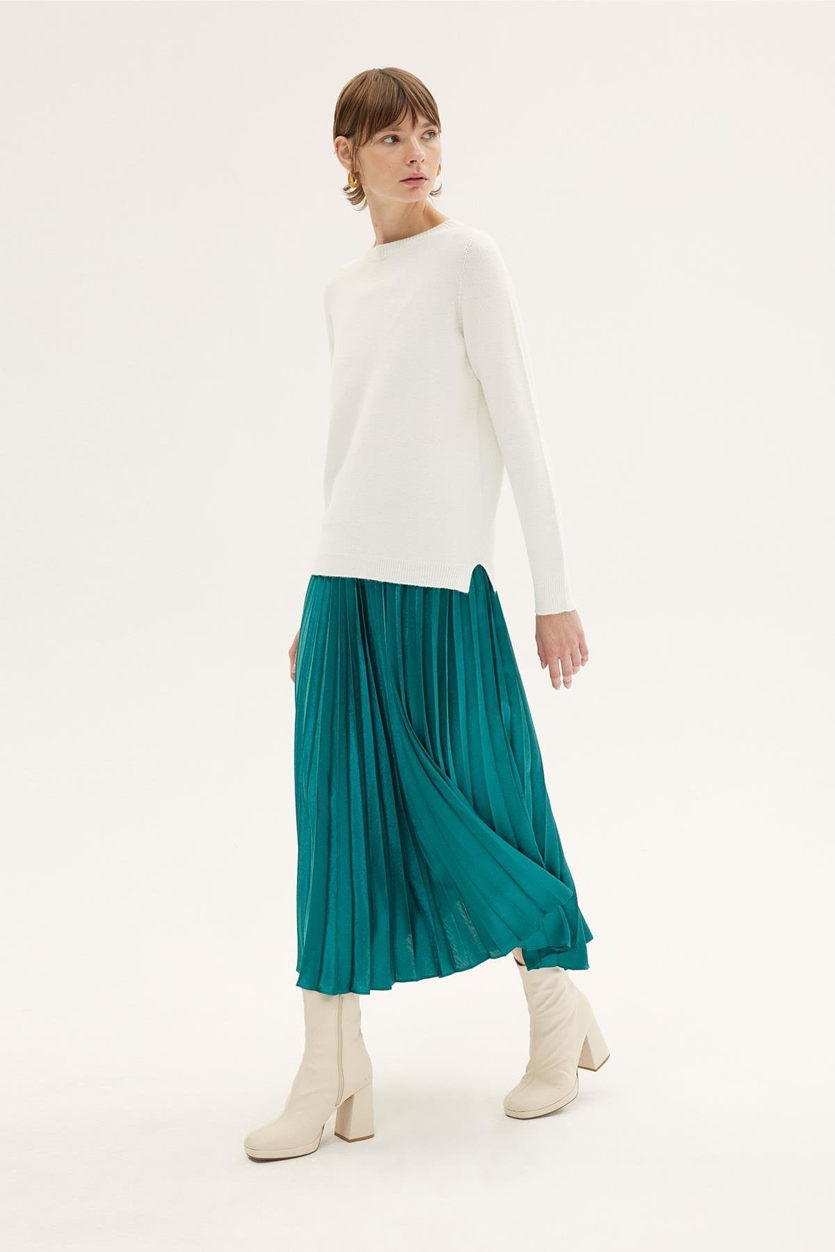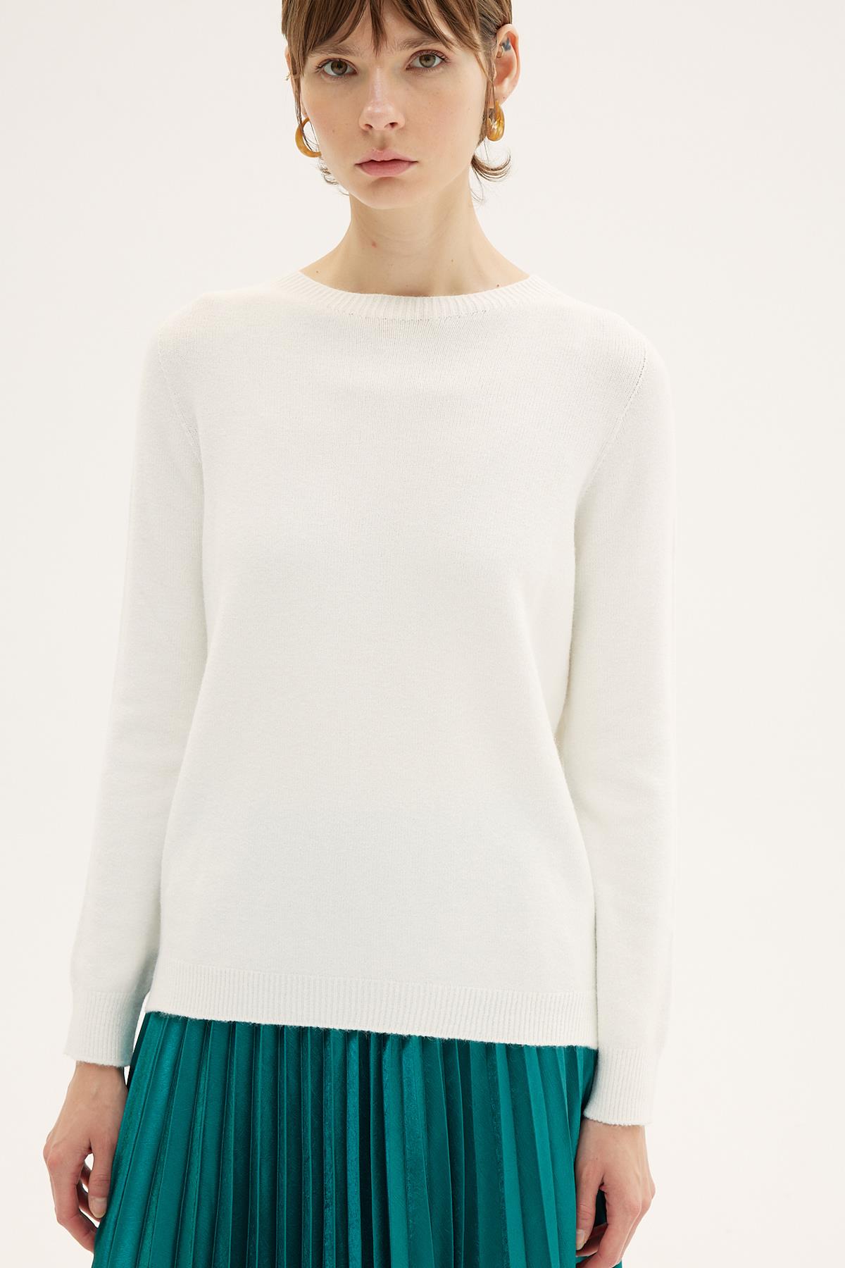 Fit: Relaxed straight silhouette; long sleeves with soft ribbed cuffs; classic round neckline; fine-gauge knit structure; smooth texture with a comfortable drape designed for easy layering during the autumn–winter season