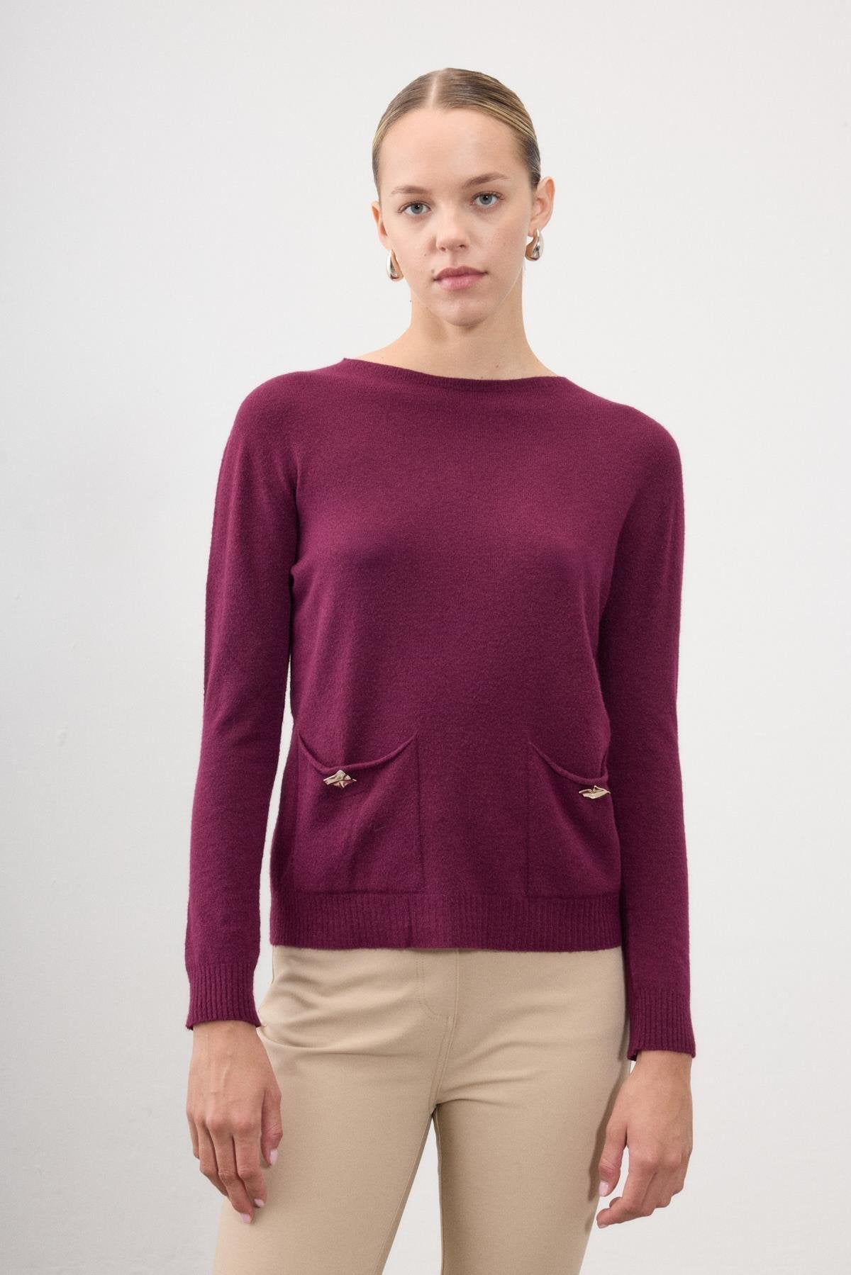 Yasemin Pocket Knit Sweater – Cherry