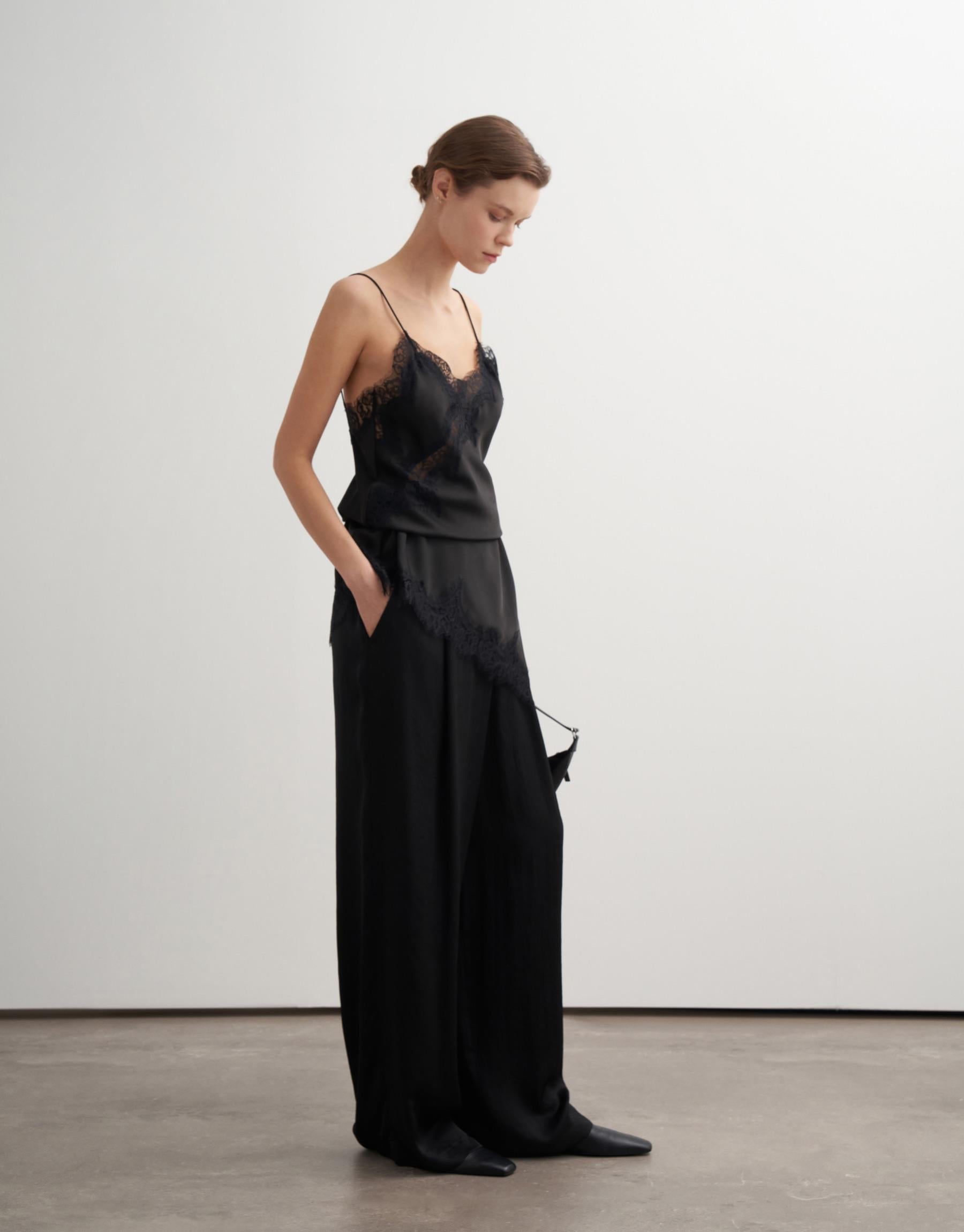 A fluid silhouette defined by clean tailoring and directional design. These trousers feature an asymmetric front panel that creates a refined, architectural line while maintaining soft movement through the leg. The draped viscose fabric enhances flow and comfort, making the piece equally suited for elevated everyday wear or more formal styling.