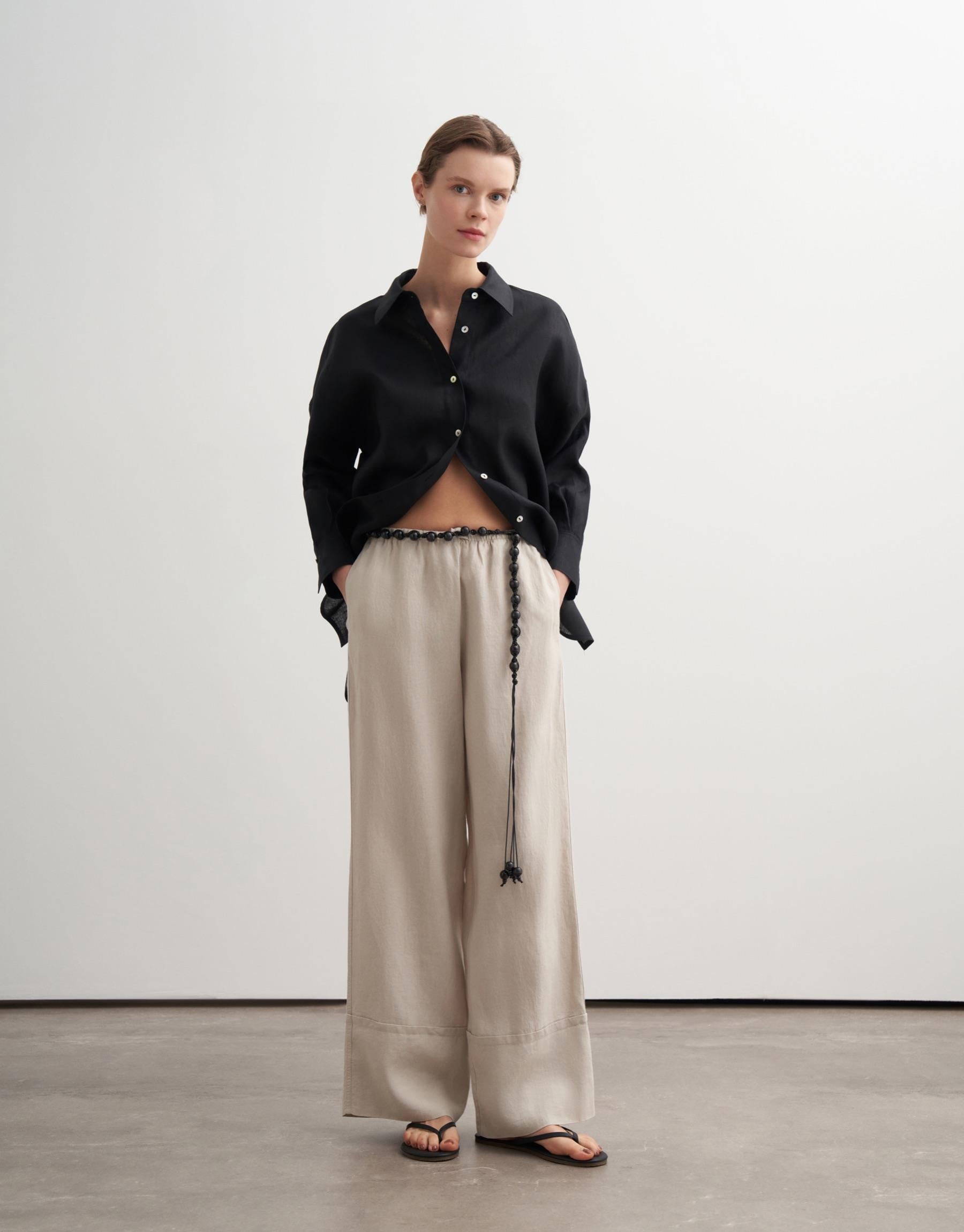 Linen Palazzo Trousers – Stone
