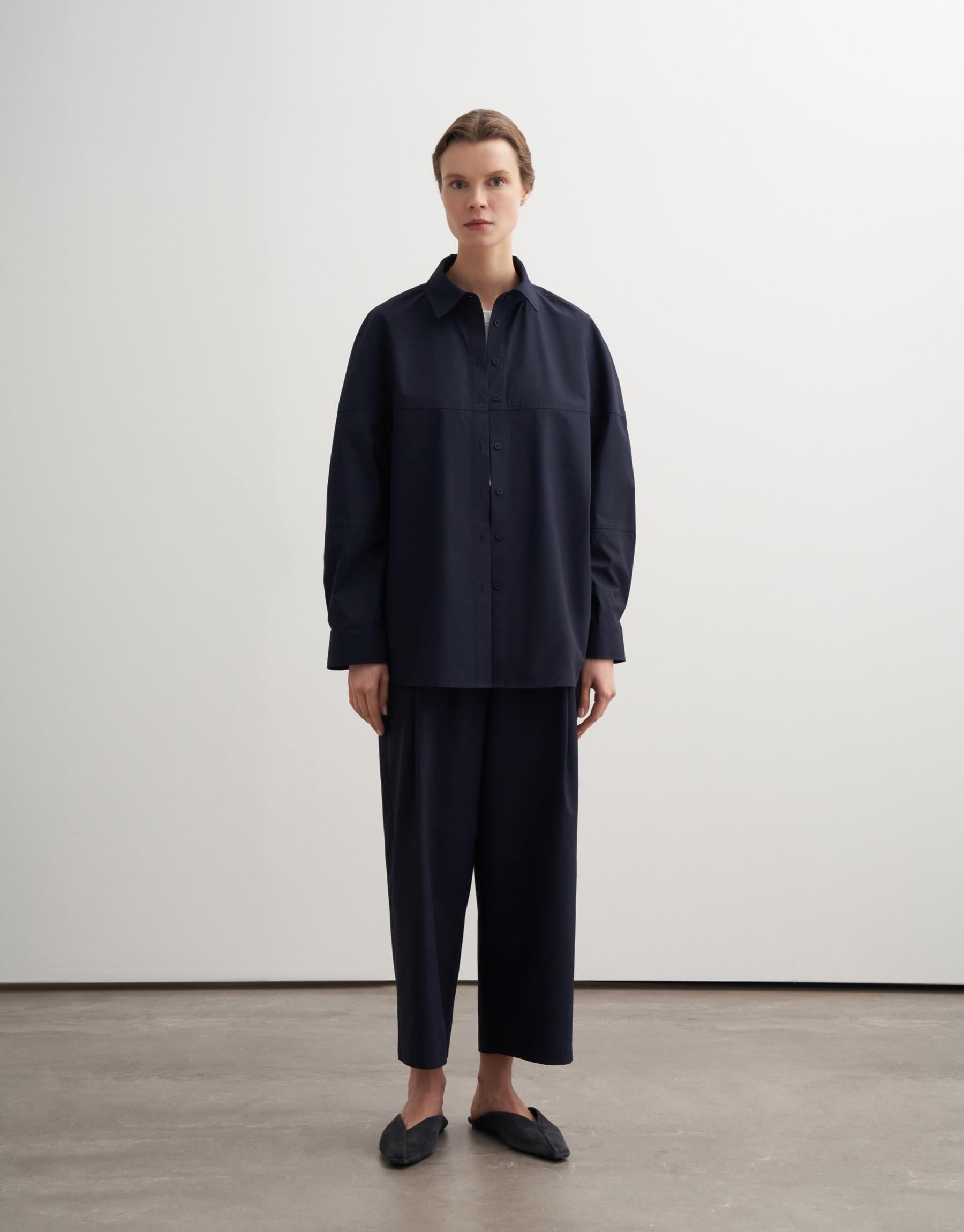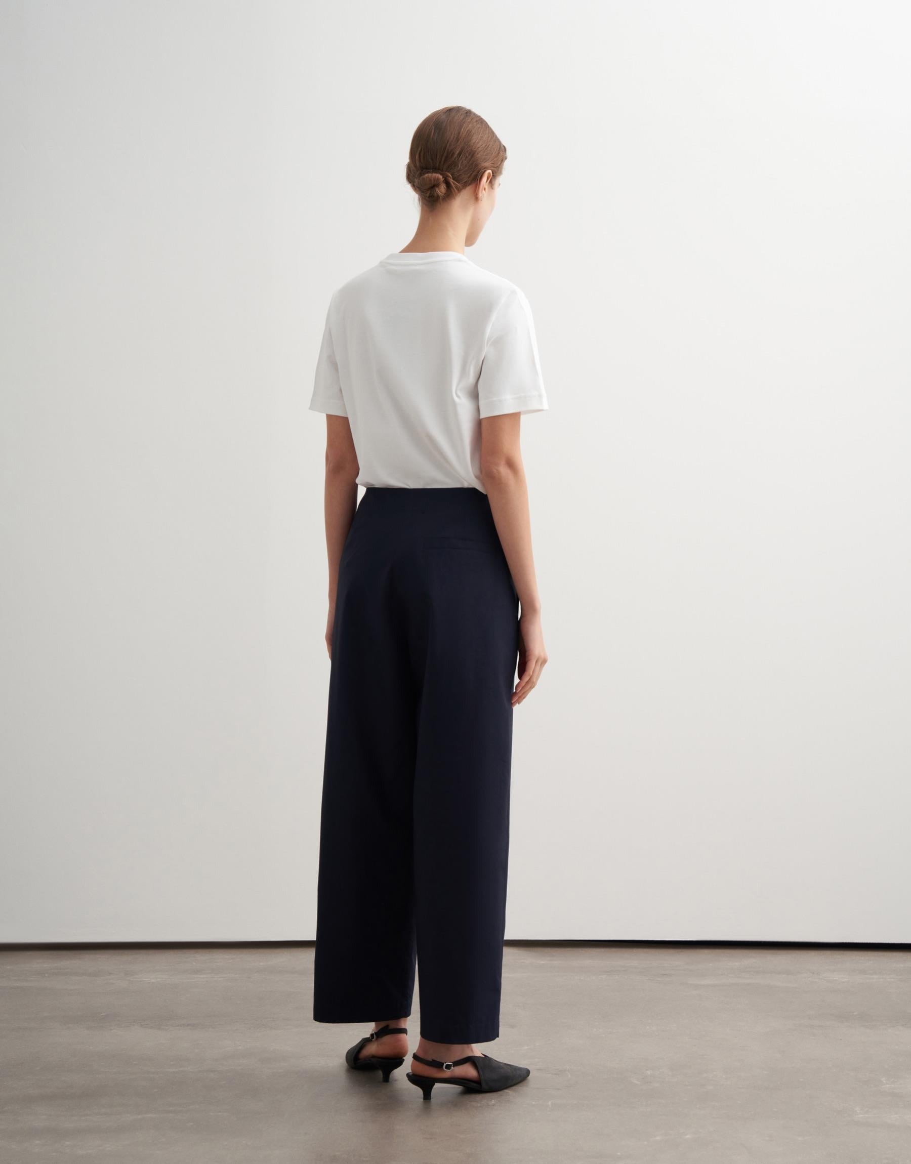 Pleated Cotton Trousers – Navy