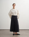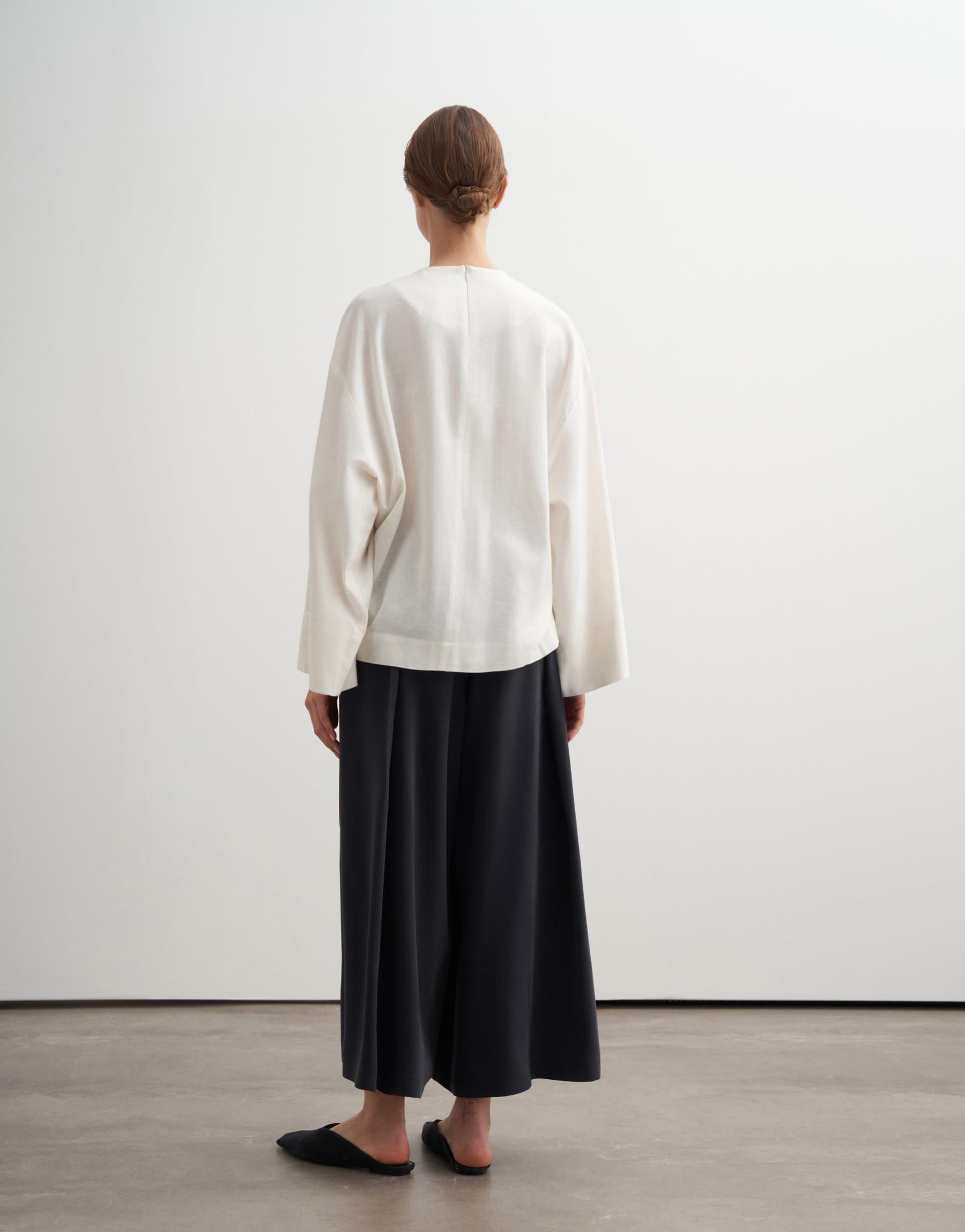 Designed with a refined fluidity, these trousers bring together soft structure and effortless movement. The pleated front enhances volume while maintaining a clean, elongated silhouette. Crafted from a modal-rich fabric, they offer a smooth, breathable feel with a subtle drape. The matching belt with a covered buckle adds a polished, cohesive finish to the look.