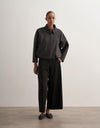 A contemporary essential defined by clean tailoring and soft structure, these wide-leg trousers offer a balanced silhouette with subtle pleats that enhance movement. The high-waisted design creates a refined shape, while the fluid fabric blend provides both comfort and a polished finish. Ideal for understated, elegant styling.