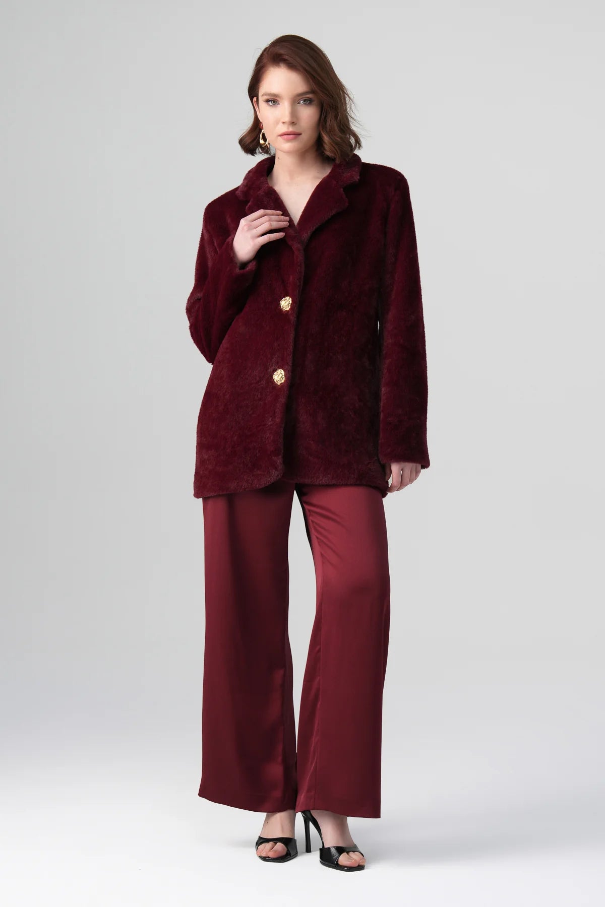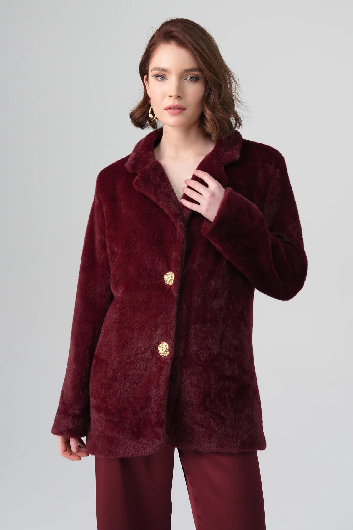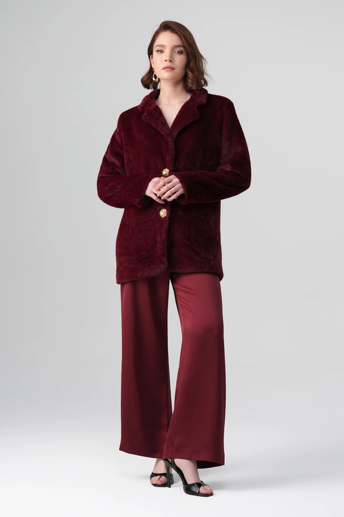 Crafted from a plush, ultra-soft faux-fur texture, this coat blends warmth with timeless sophistication. The structured lapel, gold-tone buttons, and tailored silhouette elevate even the simplest outfit — making it perfect for dinners, events, or luxury daywear.