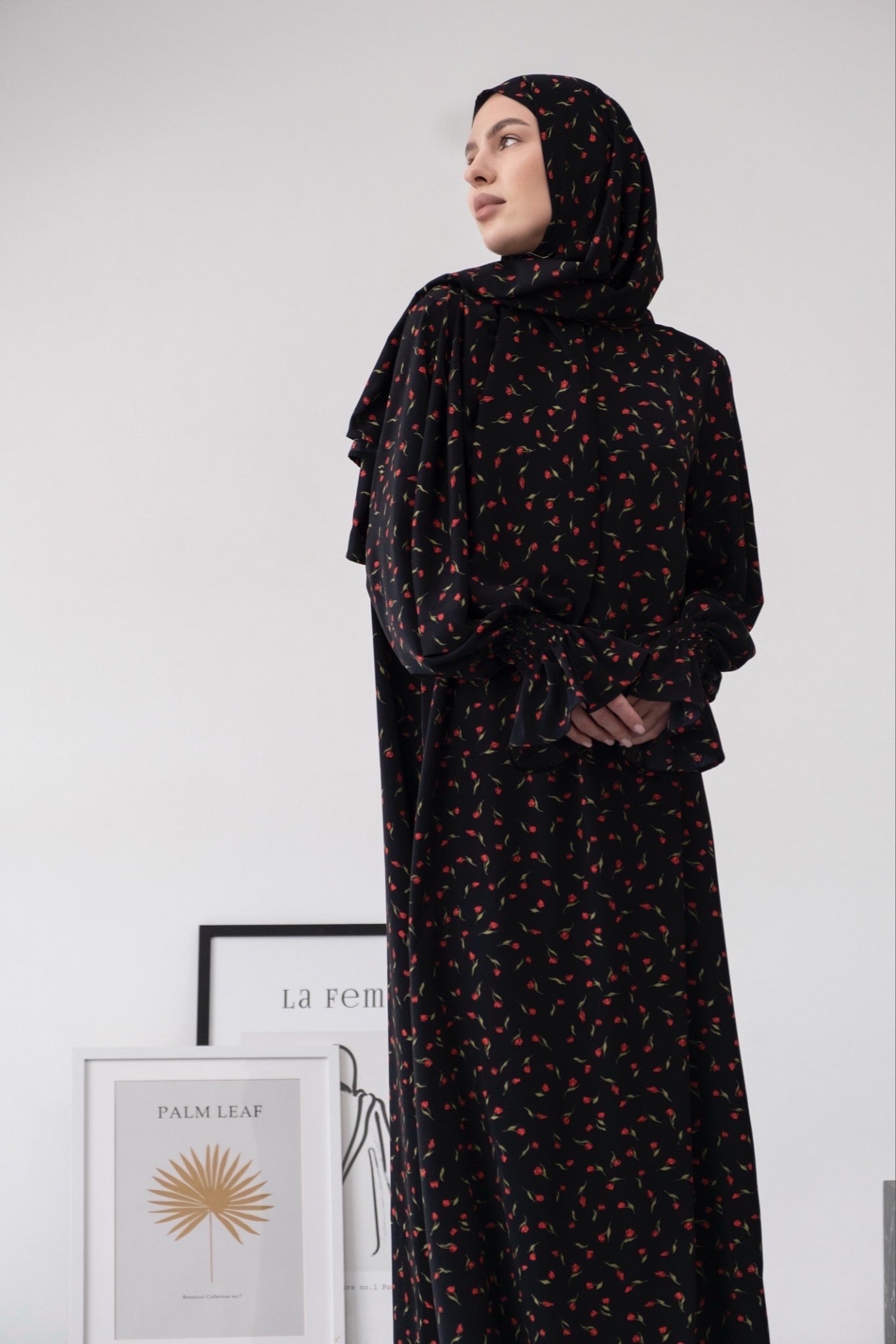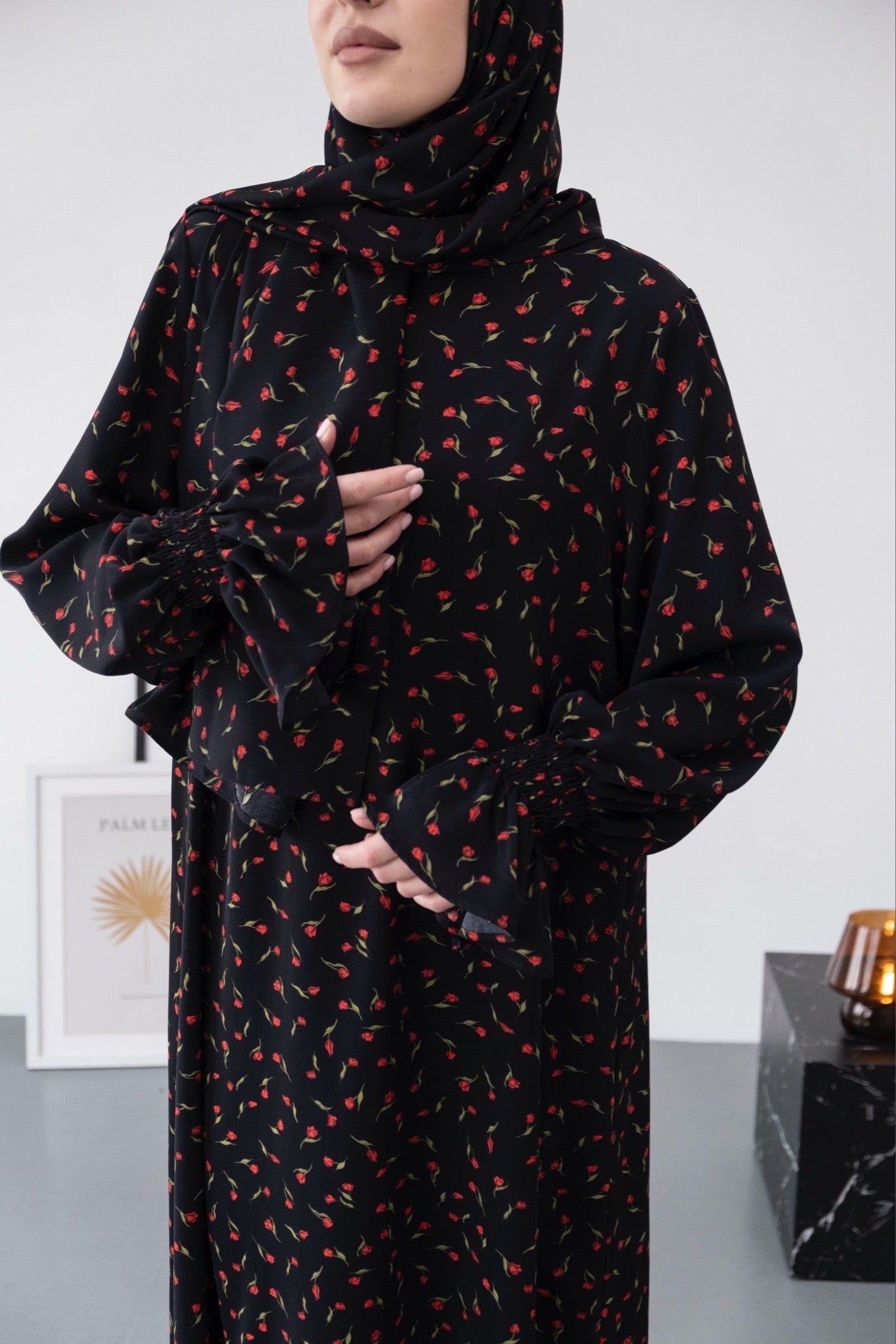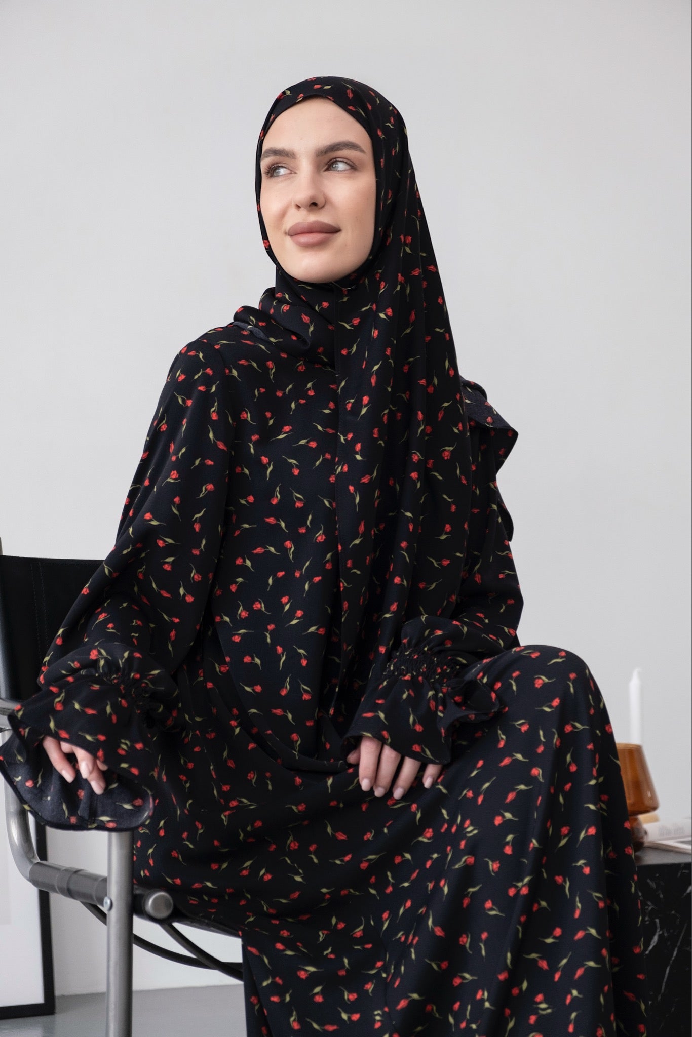 Slip into serenity with this effortlessly elegant prayer dress. Designed for ease and comfort, this one-piece ensemble comes with an attached scarf, providing full coverage from head to toe. The soft, breathable fabric features a delicate floral print that adds a gentle, feminine touch to your spiritual moments.