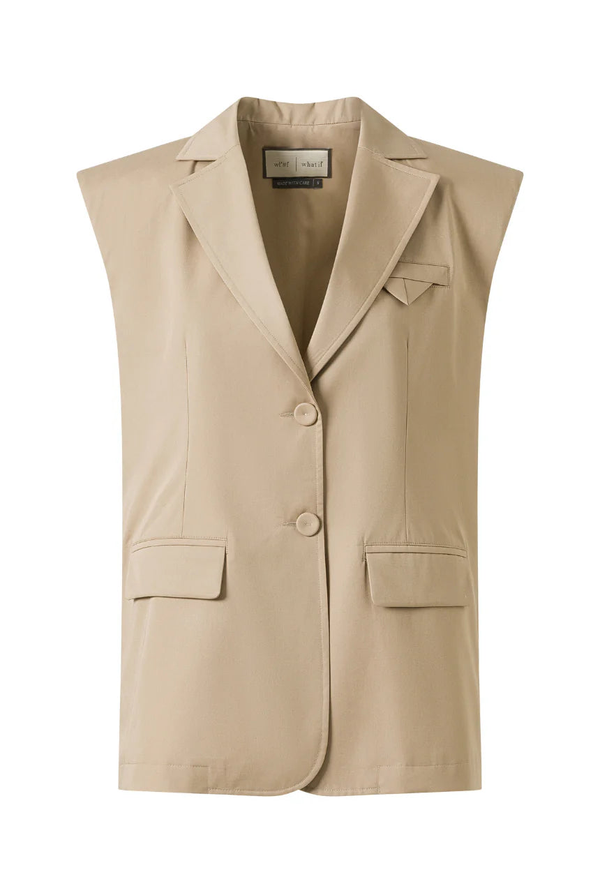 A structured yet versatile piece, this beige vest merges sharp tailoring with feminine refinement. Featuring an adjustable lace-up back detail, it allows for a personalized fit while maintaining a clean, modern silhouette. Its light organic cotton fabric ensures effortless wear for both office-ready ensembles and casual layering.