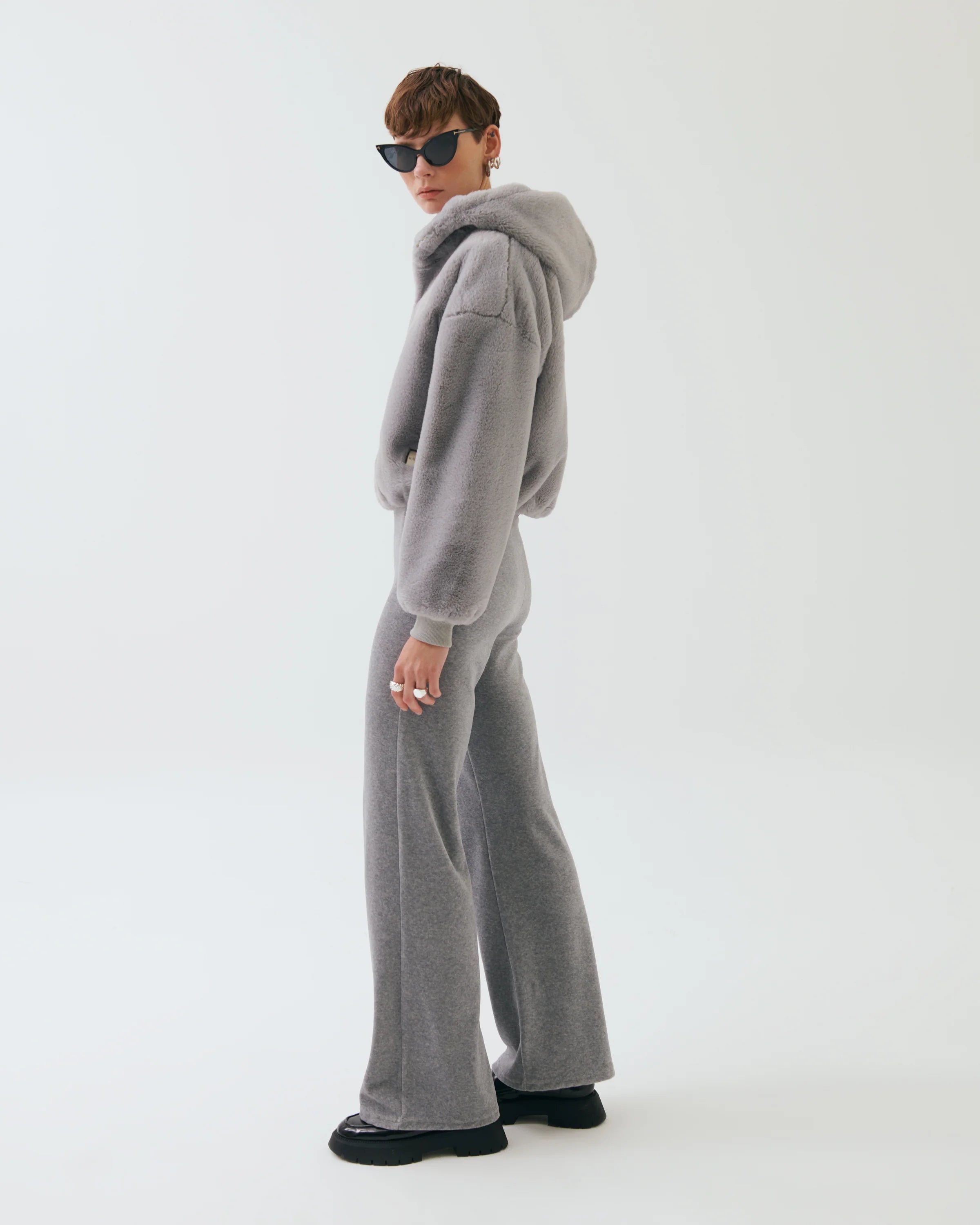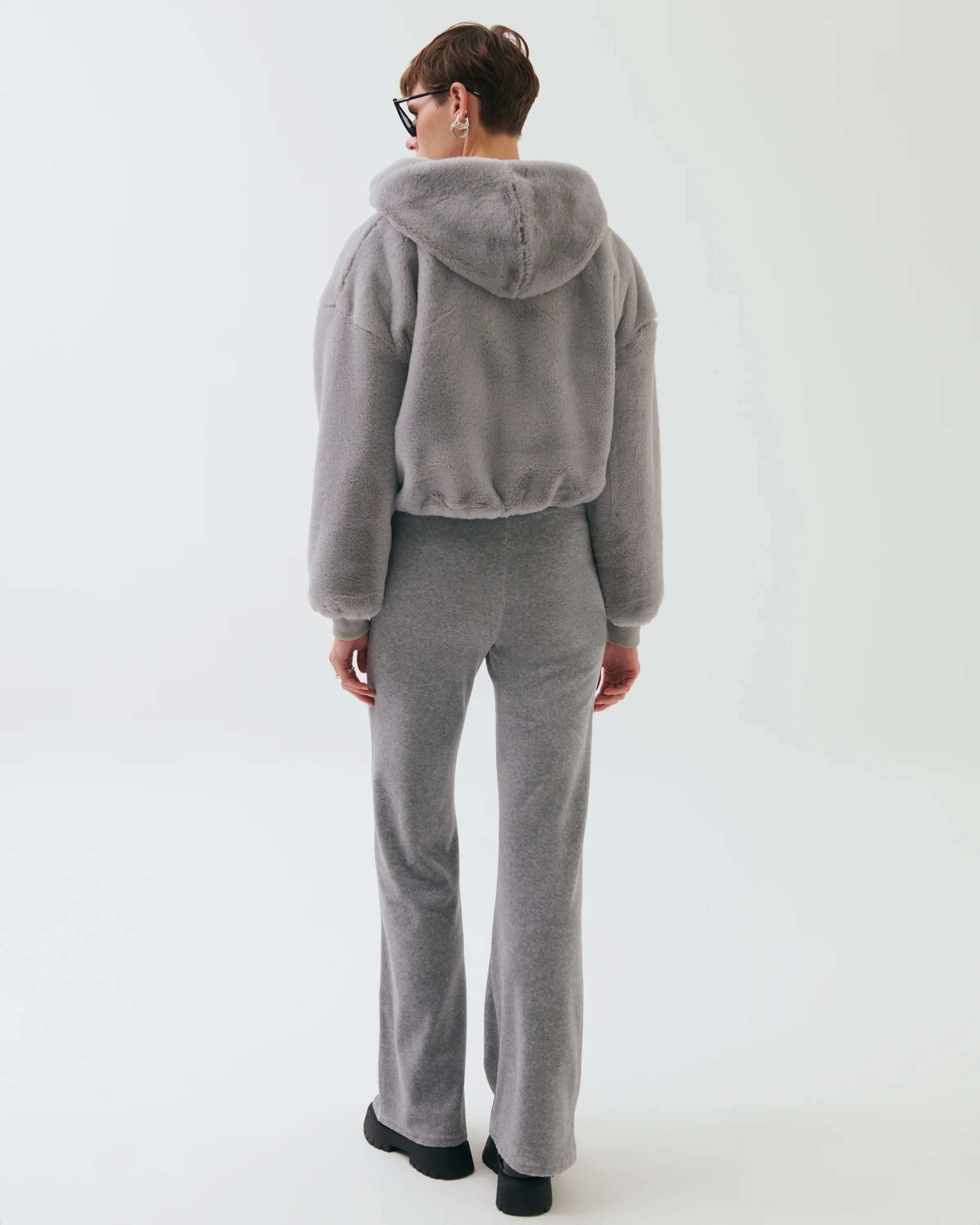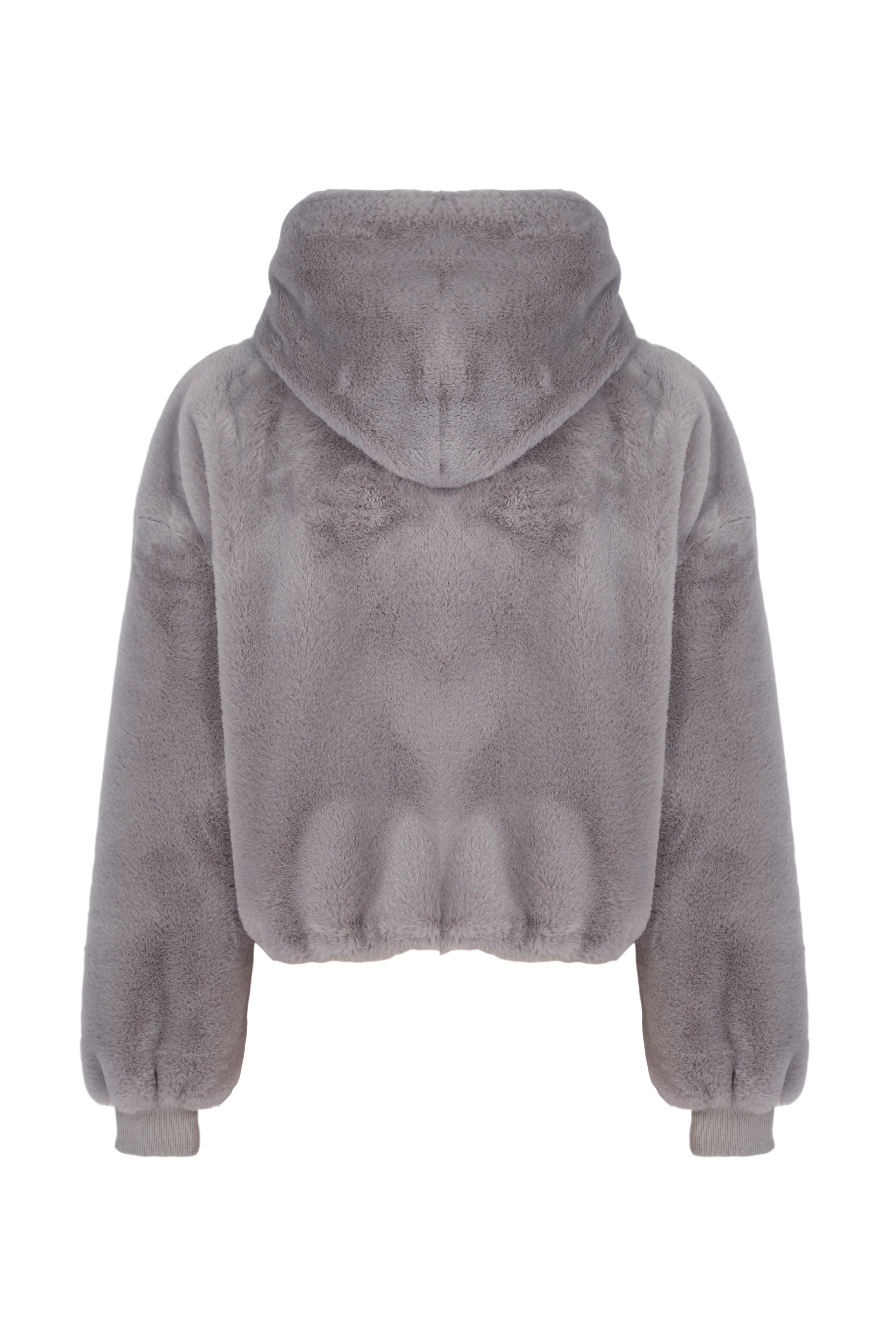 Anya Faux Fur Cropped Hoodie – Gray