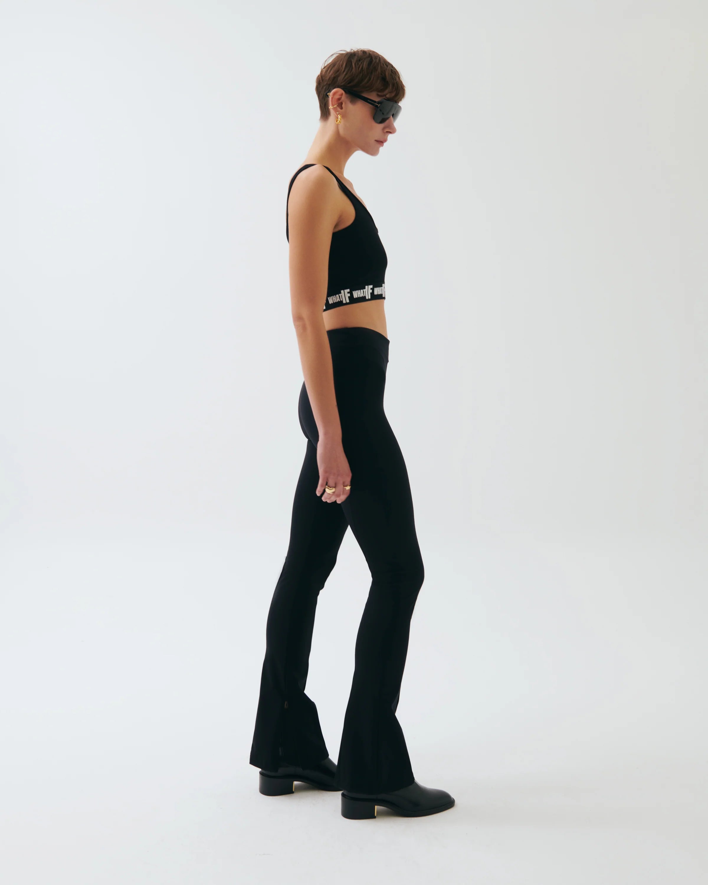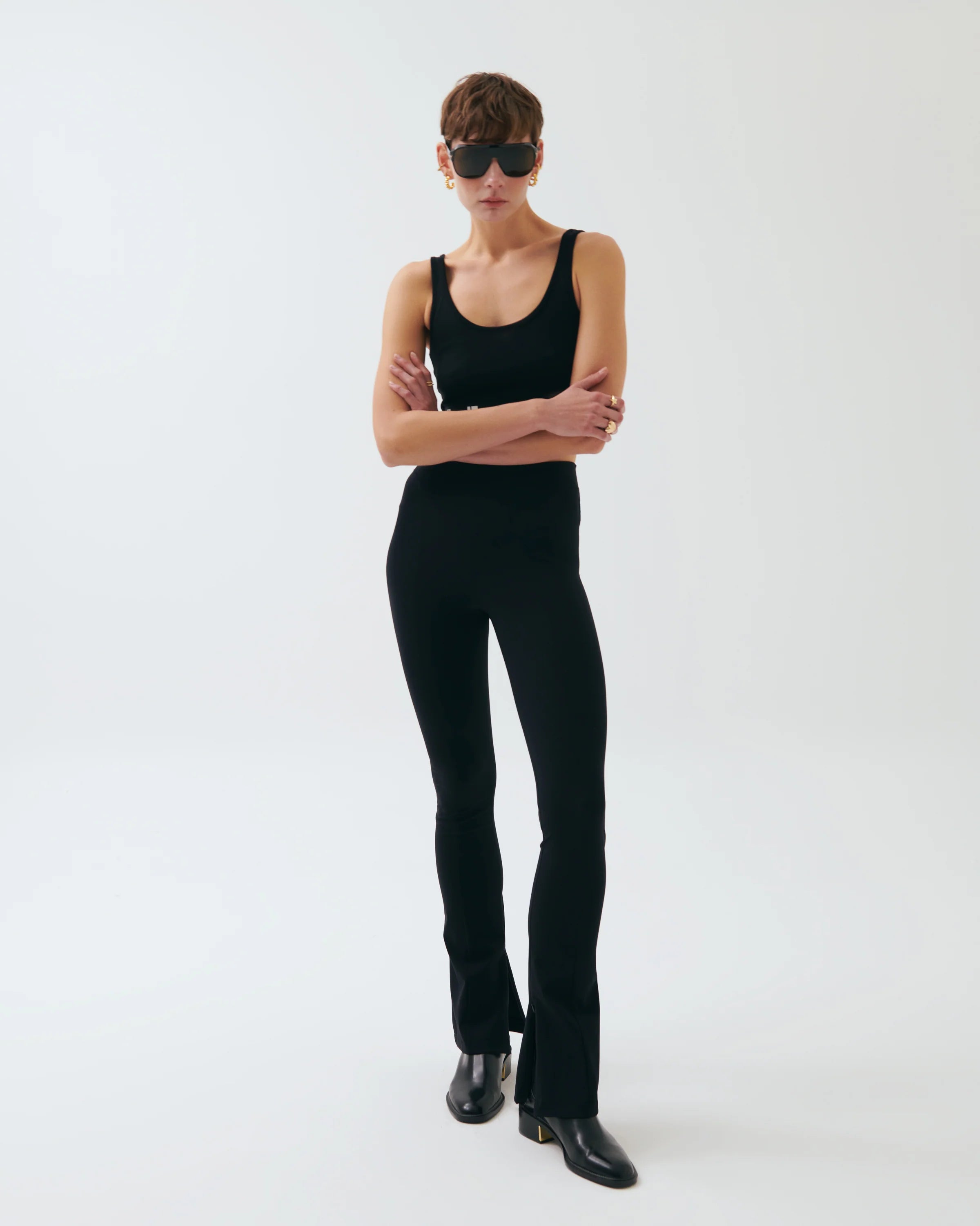 Designed to accentuate the silhouette with a refined, body-contouring fit, these high-waisted stretch pants offer a sleek balance of functionality and modern elegance. The contoured panel construction enhances structure and visual interest, while the concealed zipper detail at the hem adds a subtle yet distinctive finish. Crafted from a flexible, supportive fabric, this piece ensures all-day comfort without compromising on a sharp, confident look—ideal for both everyday wear and elevated styling.