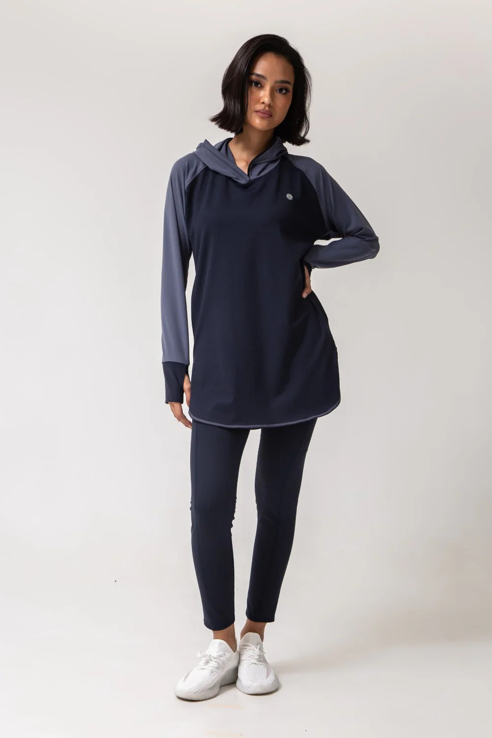 Designed for modest comfort and optimal performance, the Active Hoodie – Navy Blue is your go-to for workouts, yoga, or everyday movement.