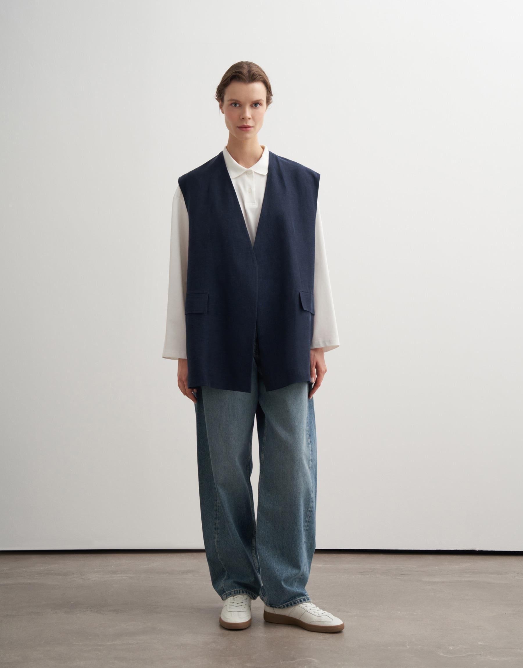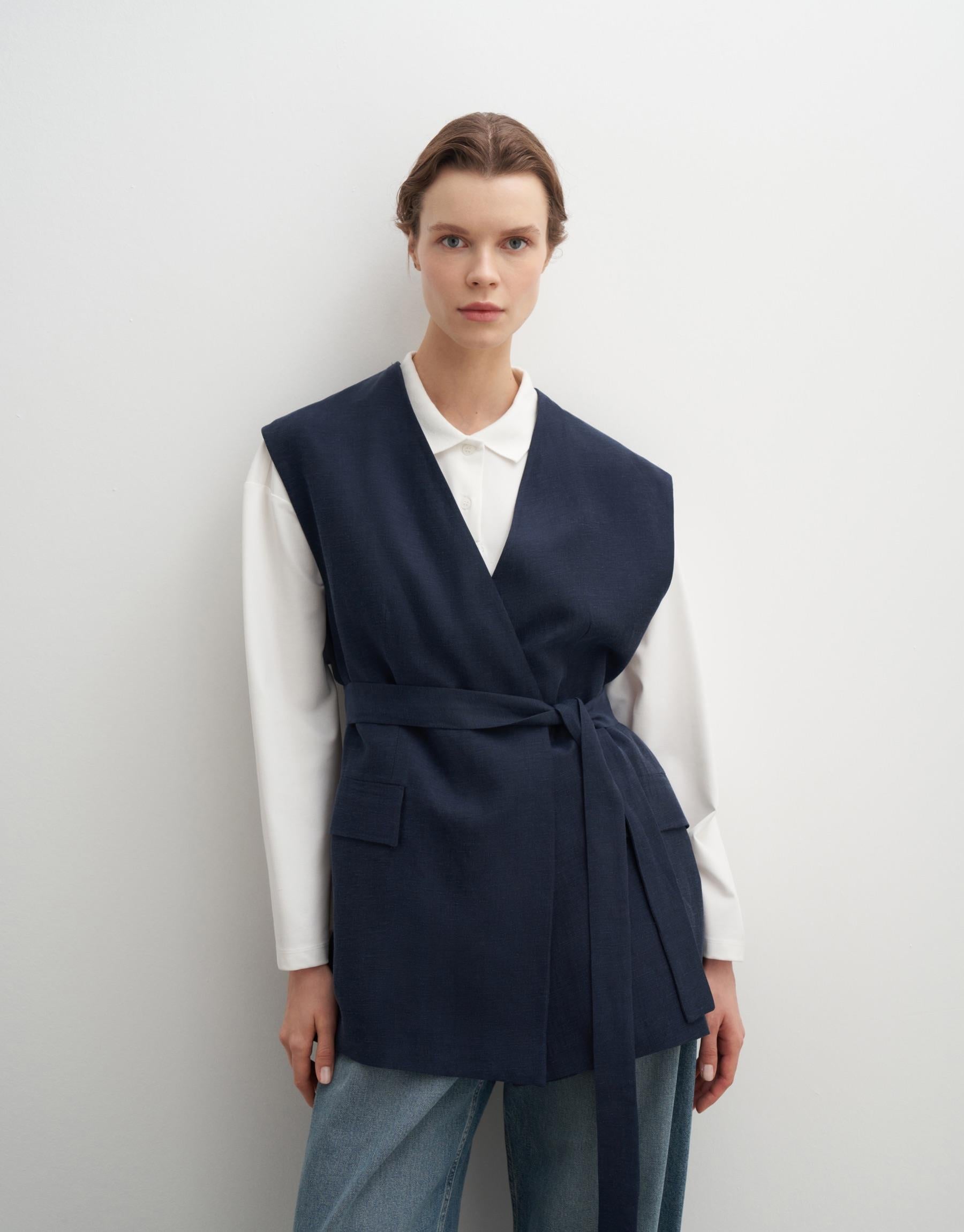 Vegan Linen Wrap Vest – Navy