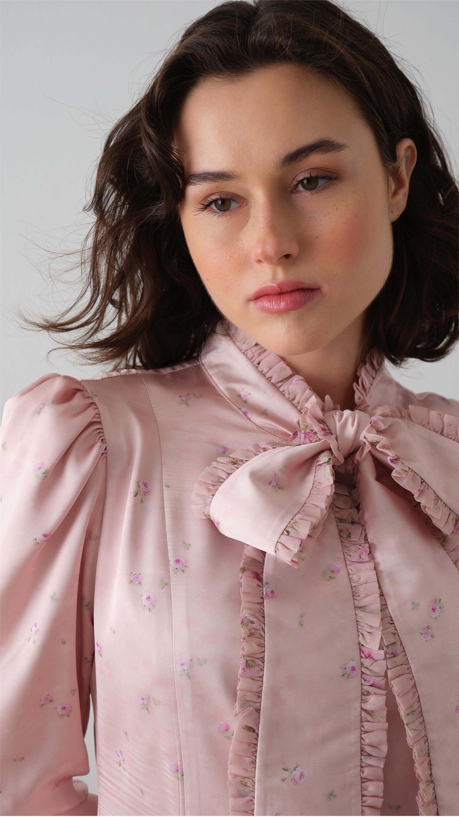 Bow-Neck Floral Dress – Pink