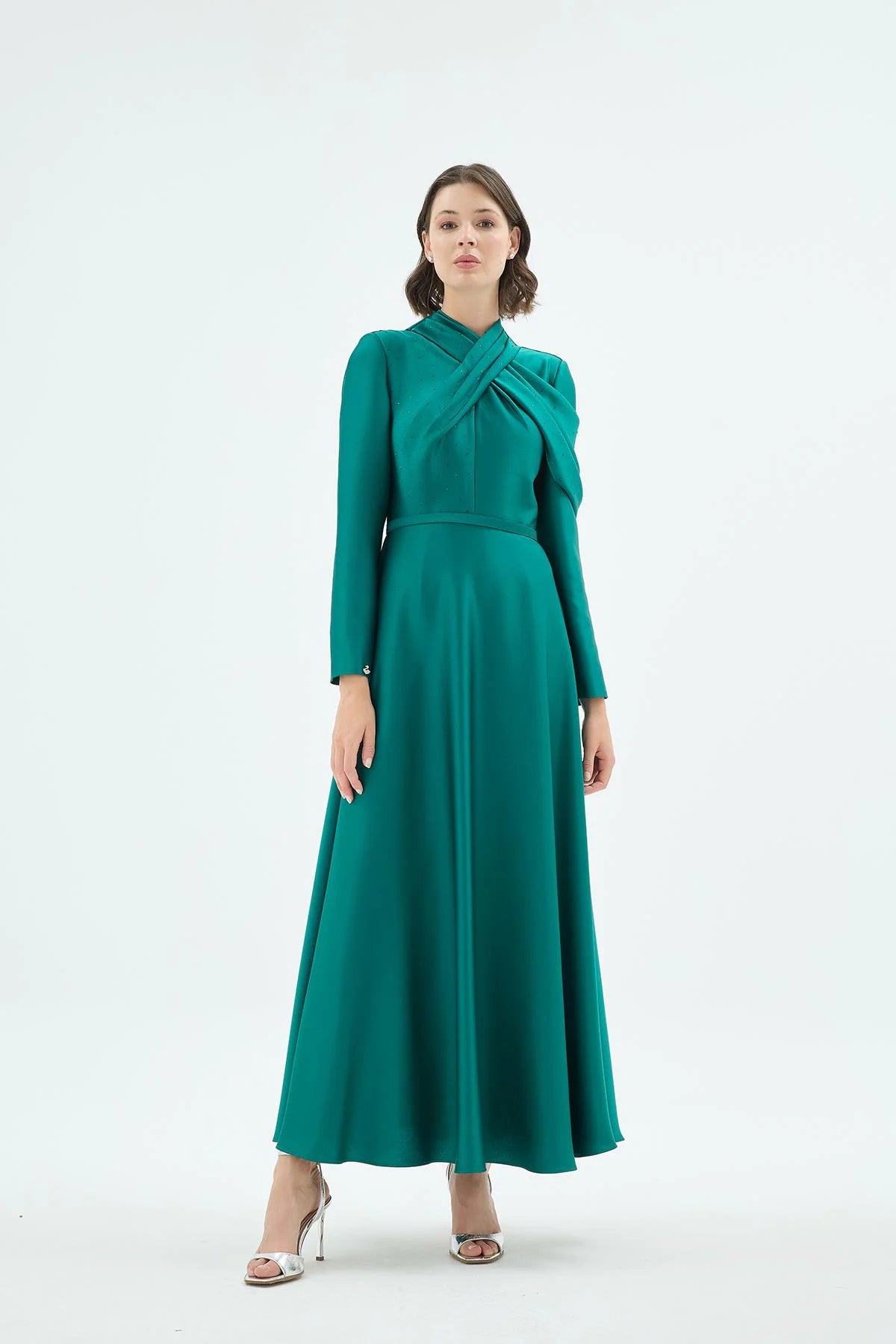 Draped Crystal-Embellished Dress – Emerald