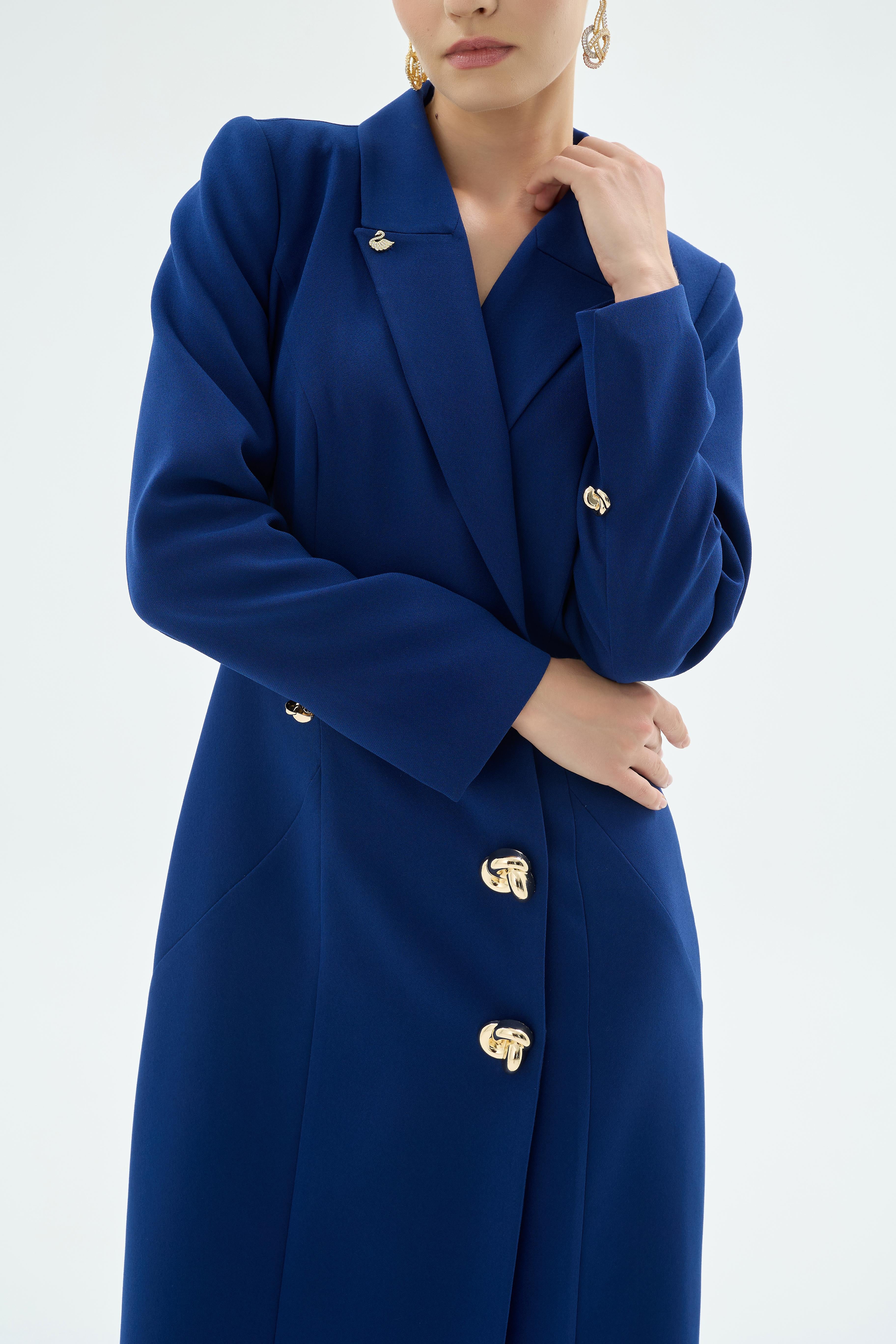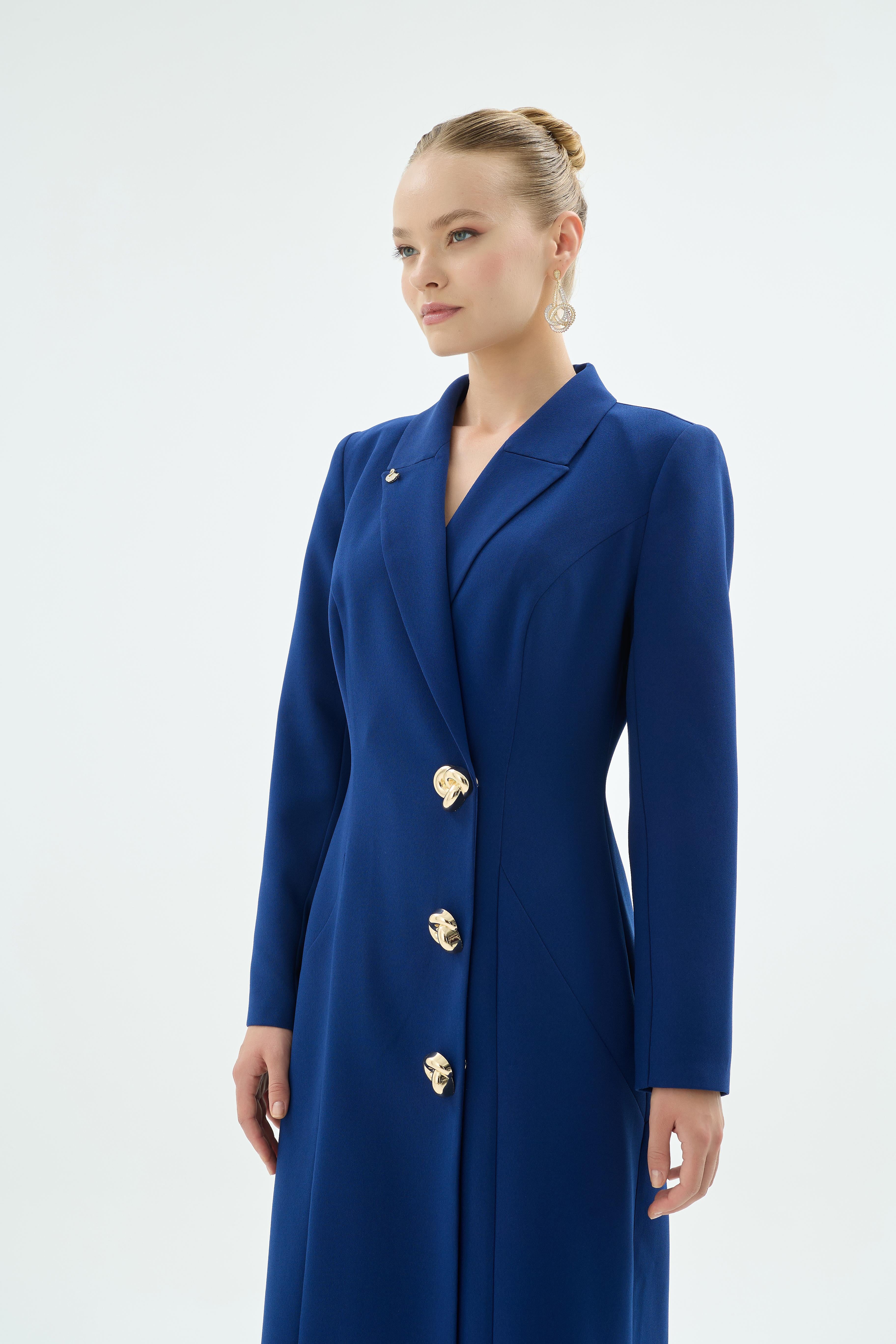 Tailored Blazer Collar Buttoned Dress – Navy