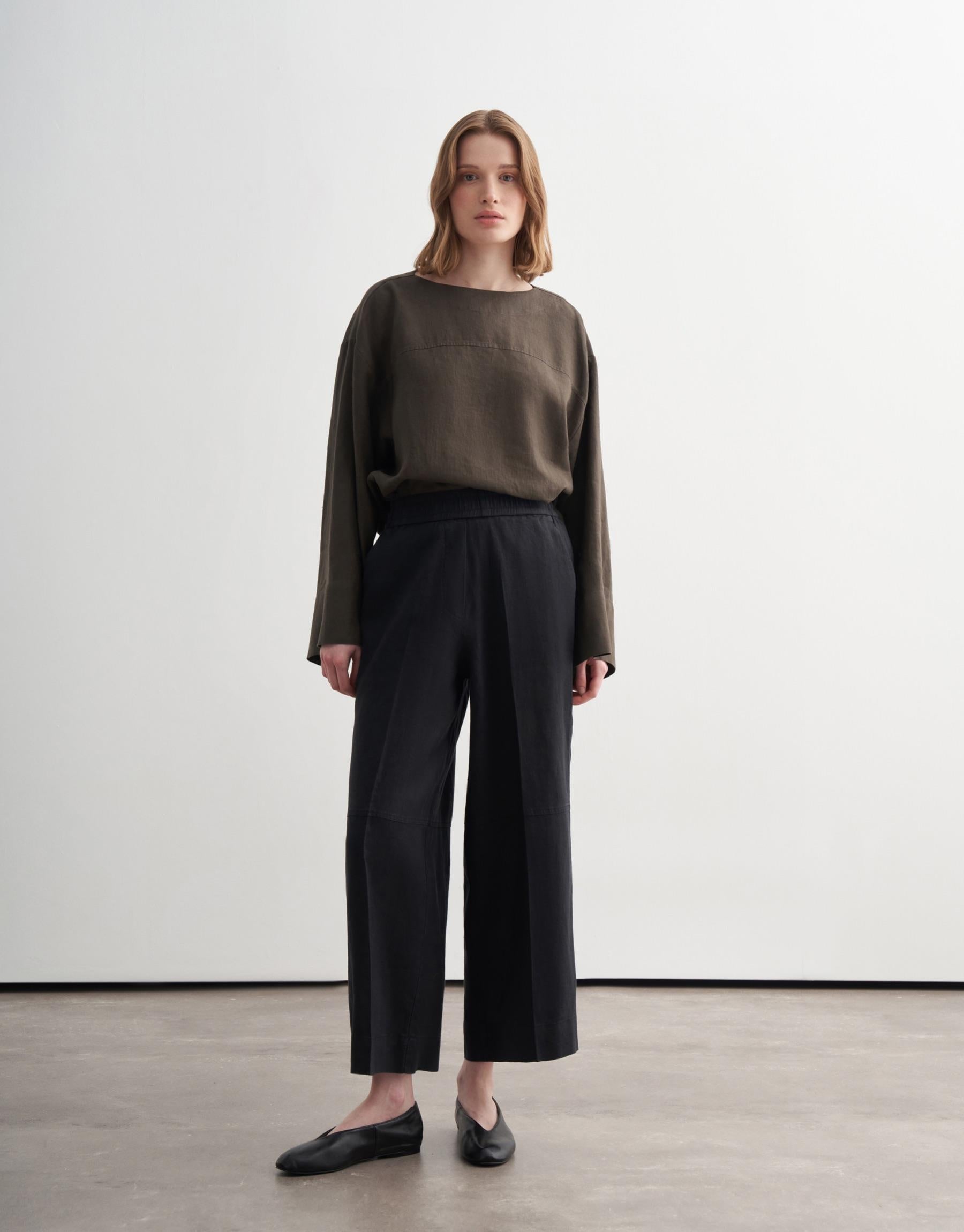 Relaxed Linen Culotte Trousers – Black
